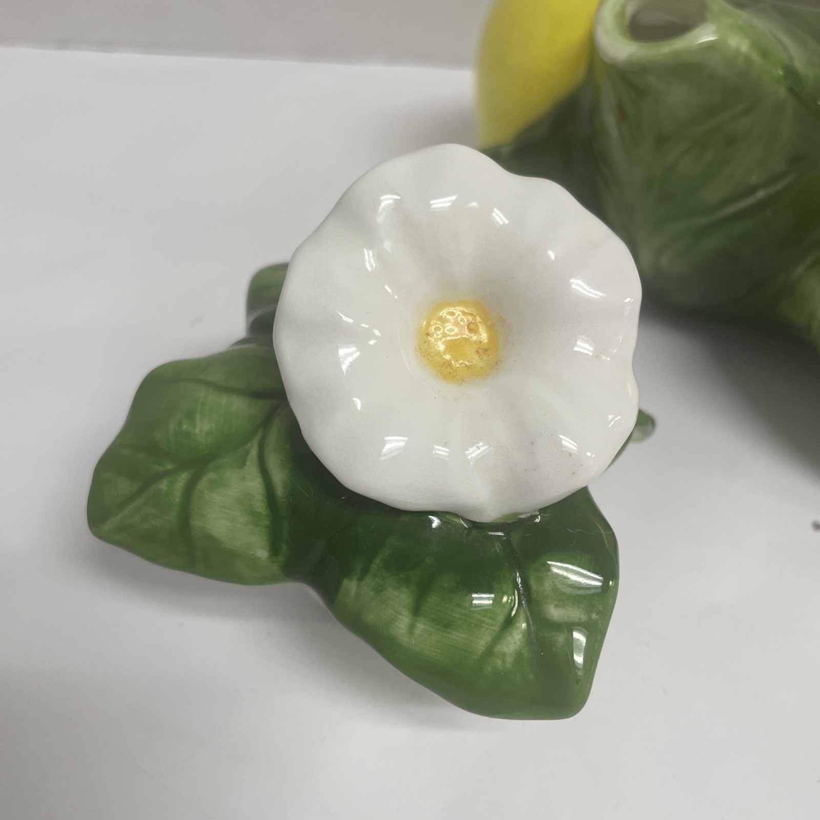 The Vintage Andrea by Sadek Lemon Shaped Teapot by Jay Willfred is a charming collectible piece perfect for any tea lover or collector. Made of ceramic with a medium size and multicolor pattern, this teapot is designed in the shape of a lemon, adding a whimsical touch to your kitchen decor. The teapot set includes a lid and is ideal for all occasions, making it a versatile and unique addition to your tea party or dinnerware collection. Originating from Portugal, this vintage teapot from Andrea by Sadek brings a touch of nostalgia and elegance to your tea serving experience.