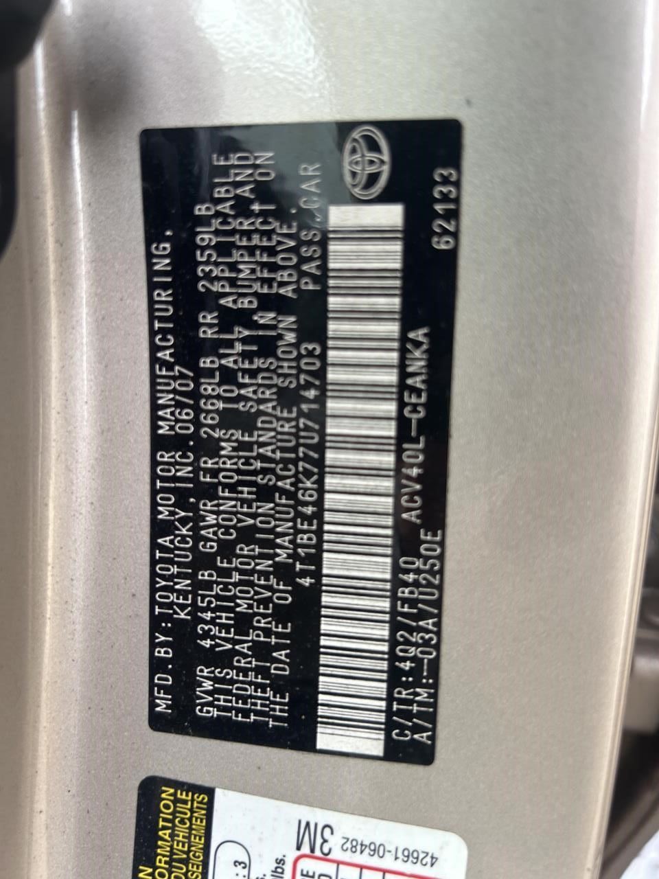 CAMRY 07 Power Rack and Pinion; VIN K (5th digit), North America built, (without outer tie rods), XLE