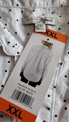 JACHS Girlfriend NY ~ White w/Polka Dot Print ~ Button Up Blouse ~ Size XXL