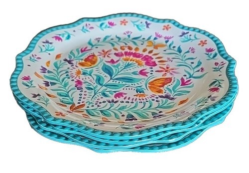 Four (4) Pioneer Woman ~ FOLK GEO ~ 10.7" Dia. ~ Melamine ~ Dinner Plates added to cart.