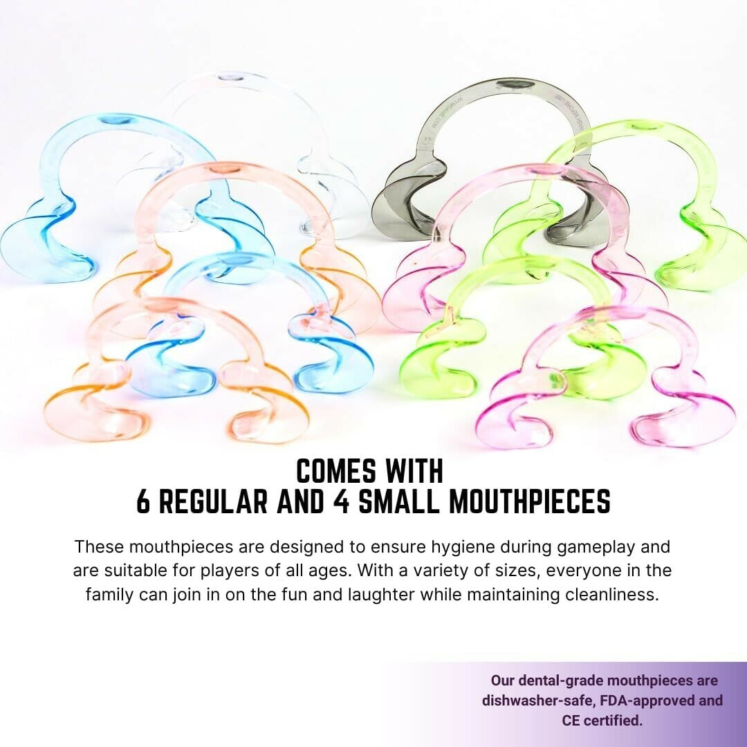 CHALLENGE YOUR COMMUNICATION SKILLS as teams tackle silly phrases while hampered by mouthpieces ~ tackling family friendly phrase