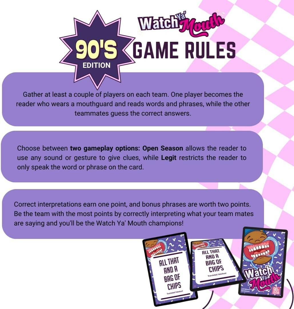 Buffalo ~ WATCH YA MOUTH 90's Edition Party Card Game ~ Age 8+ ~ 3 to 10 Players