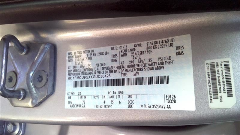 ESCAPE 15-16 Electronic Control Module; 1.6L, ID FJ5A-12B684-BA