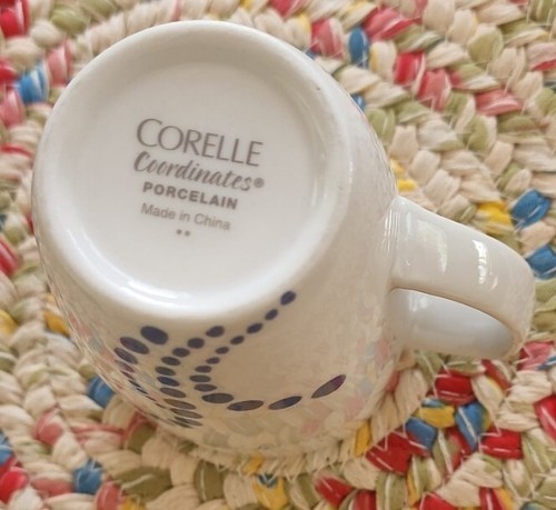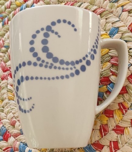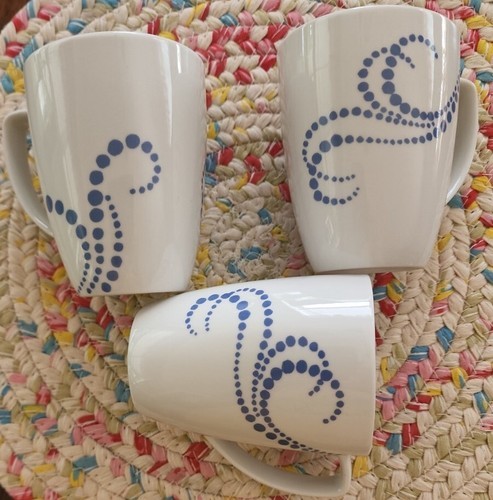 Three (3) Corelle™~ 12 Ounce ~ Porcelain Whimsical Dots (Blue) ~ Coffee Mugs