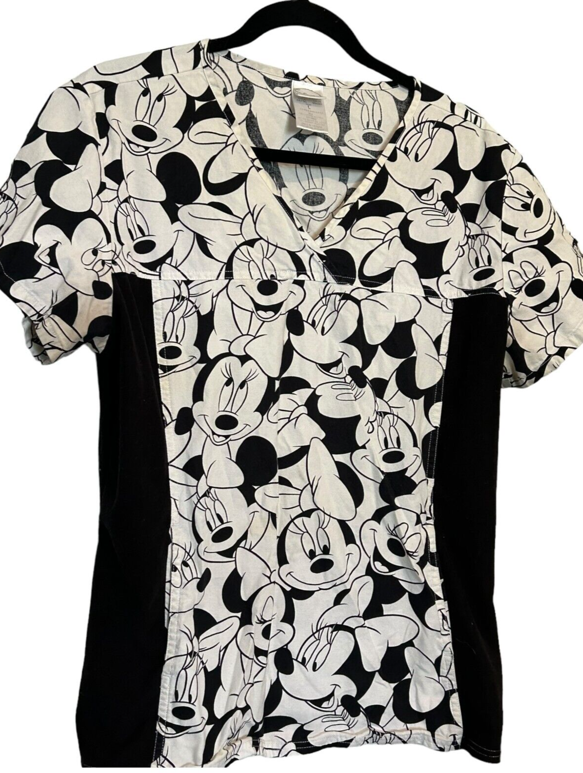 Tooniforms by Cherokee Women's V-Neck Disney Minnie Mouse Print Scrub Top size L