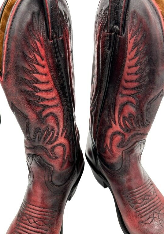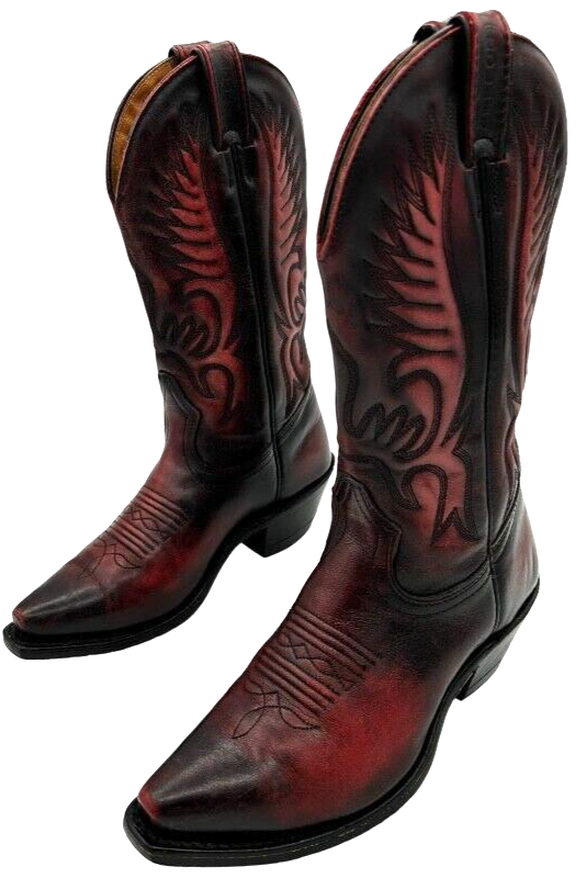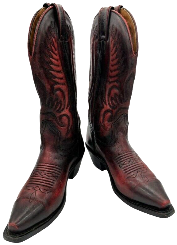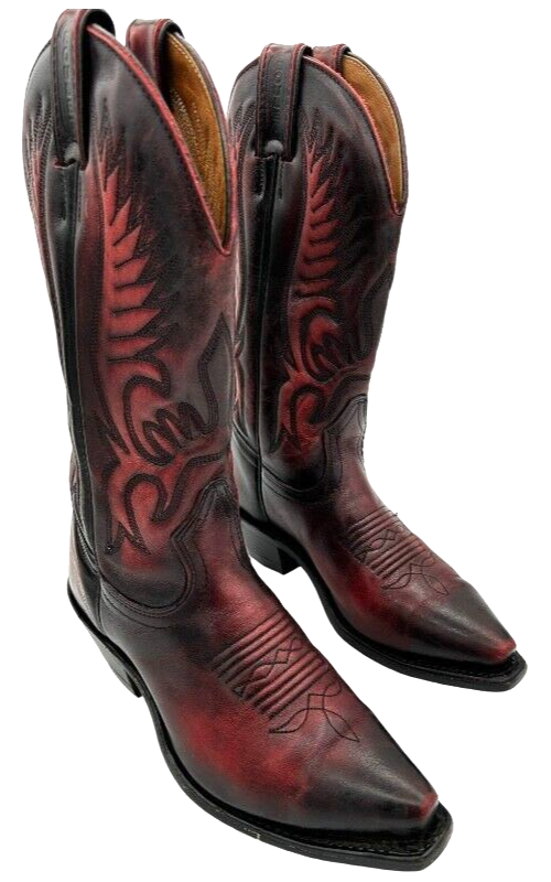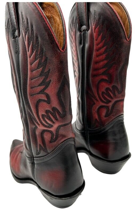 Boulet Women's 6127 Snip Toe Cowboy Heel Tooled Leather Sole 13" Palermo Black Cherry size 5C