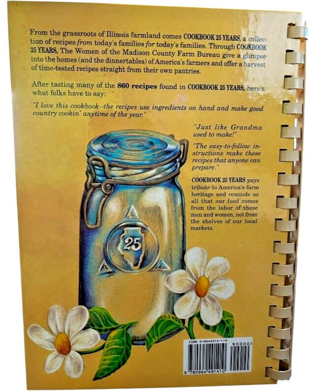 From the grassroots of Illinois farmland comes Cookbook 25 Years, a collection of recipes from today's families for today's families. Through Cookbook 25 Years, the Women of Madison County Farm Bureau give a glimpse into the homes and the dinner tables of America's farmers and offer a harvest of time-tested recipes straight from their own pantries.