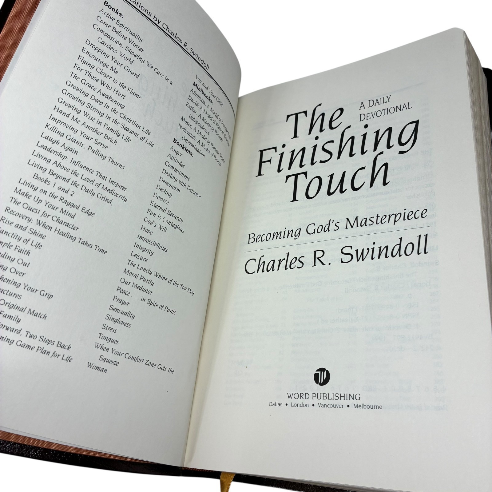 The Finishing Touch Daily Devotional Charles R. Swindoll Burgundy Leather EUC
