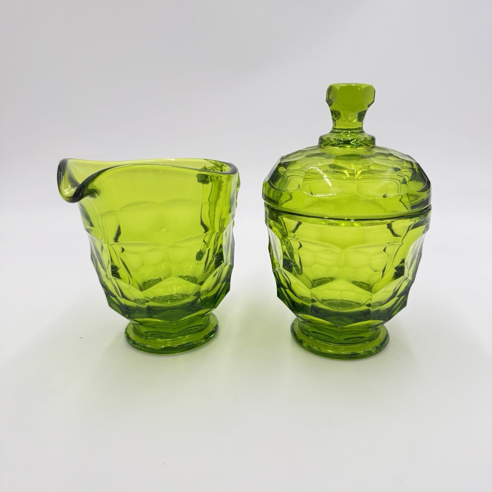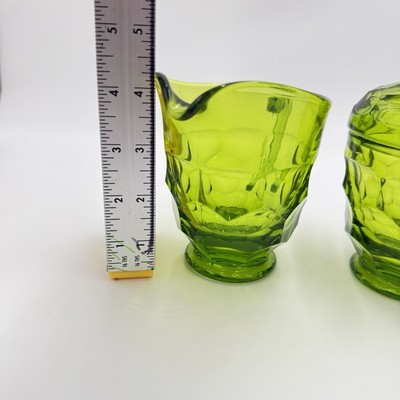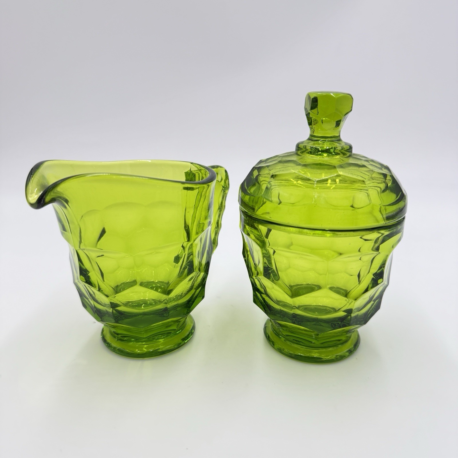 MCM Viking Art Glass GREEN GEORGIAN New Martinsville Cream and Sugar Set
