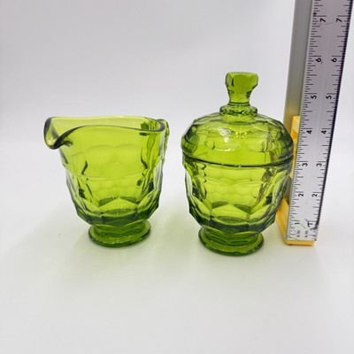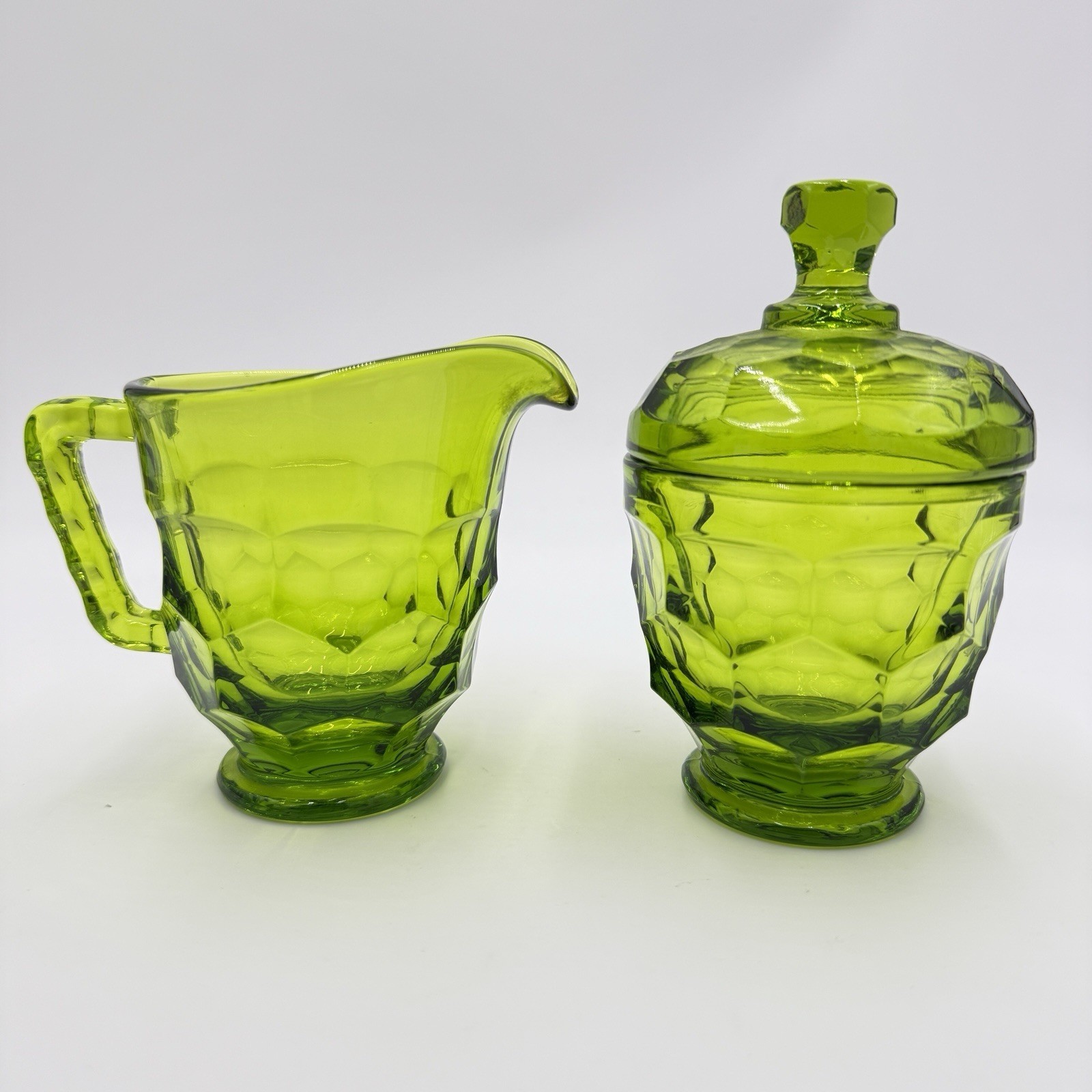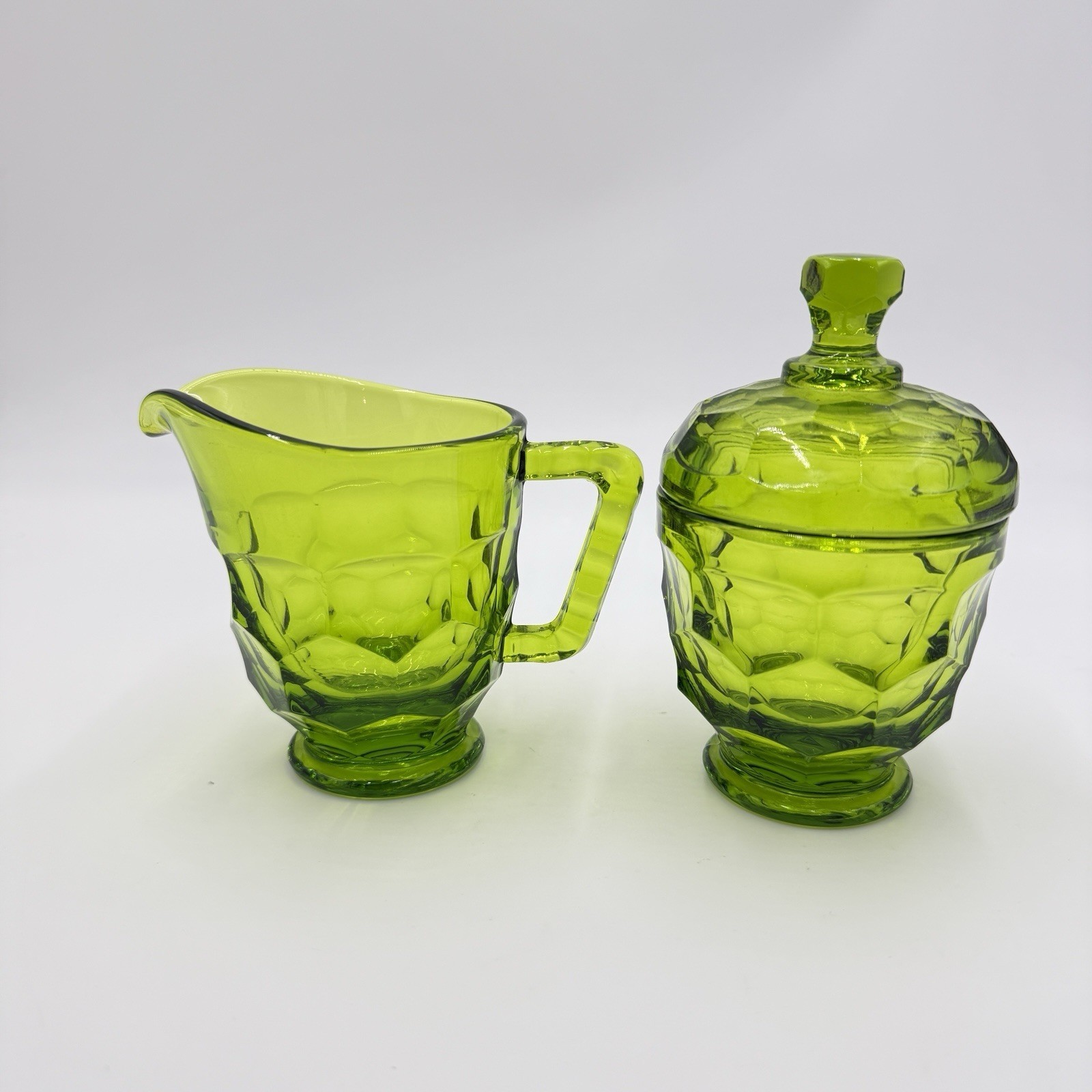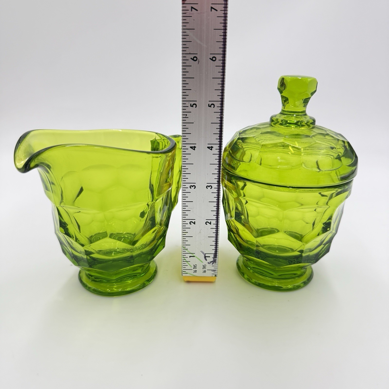 MCM Viking Art Glass GREEN GEORGIAN New Martinsville Cream and Sugar Set