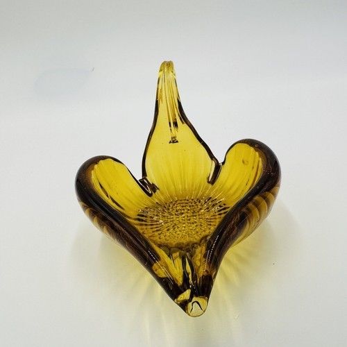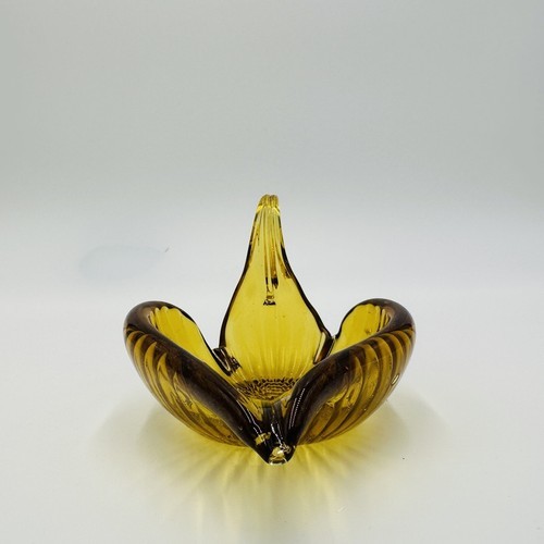 Swan Bowl Glass Figurine Vintage Art Amber Orange Candy Dish Decorative