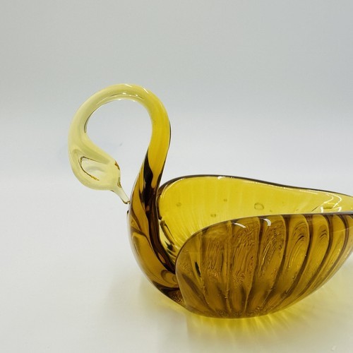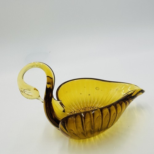 Swan Bowl Glass Figurine Vintage Art Amber and 42 similar items