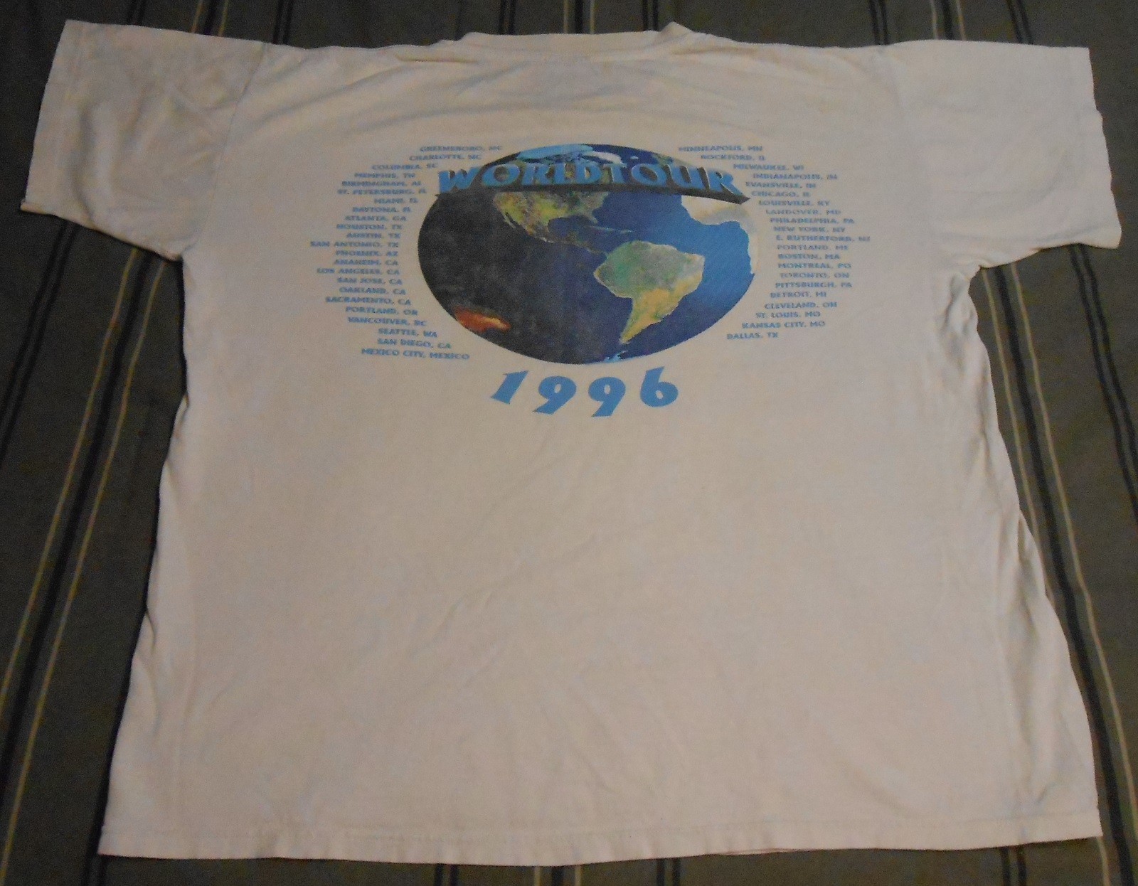 This is a 1996 vintage, AC/DC World Tour, short sleeve T-shirt. It is in good pre-owned condition...but one very small hole in right side arm pit, *See Pic. Measures approx. 22" from pit to pit. single sleeve stitching. Made in USA, sz. large.