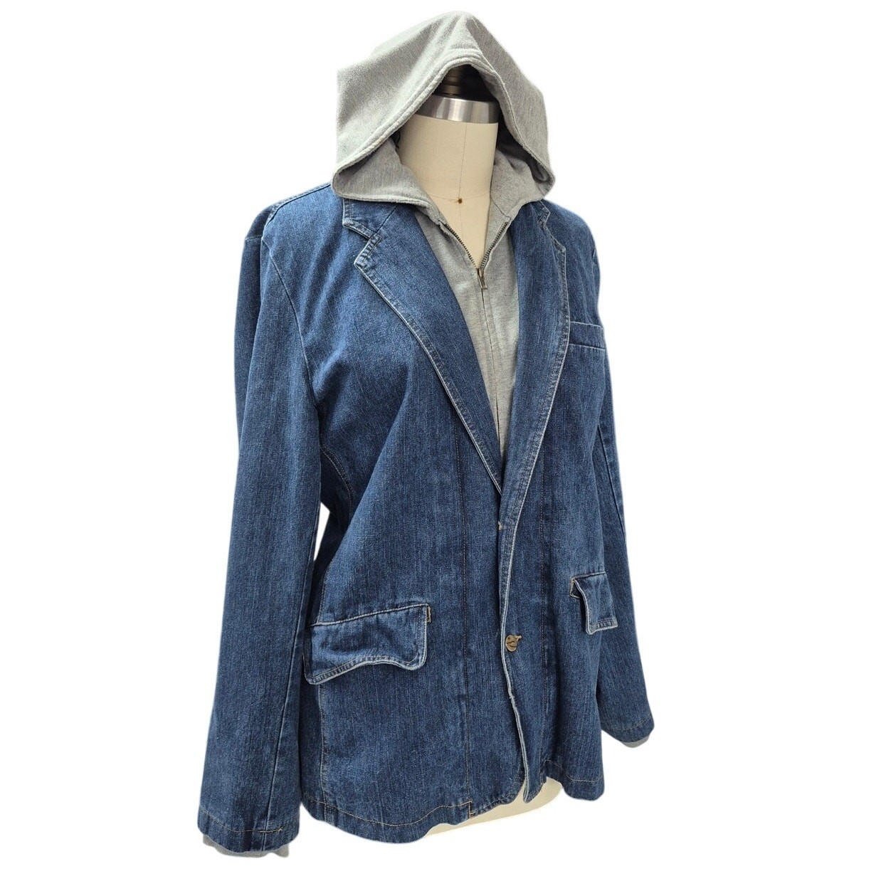 VTG Castro Vintage 100% Cotton Gray Hoodie/Blue Denim Jacket 1 Piece Sz L Unisex