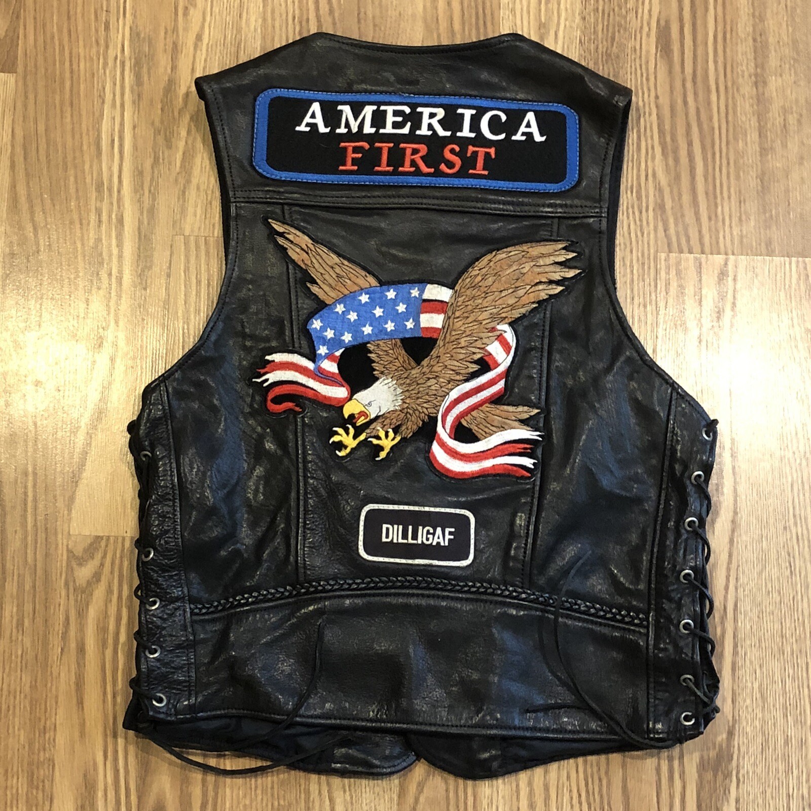 Leather Biker Vest Eagle Patch America First and 27 similar items