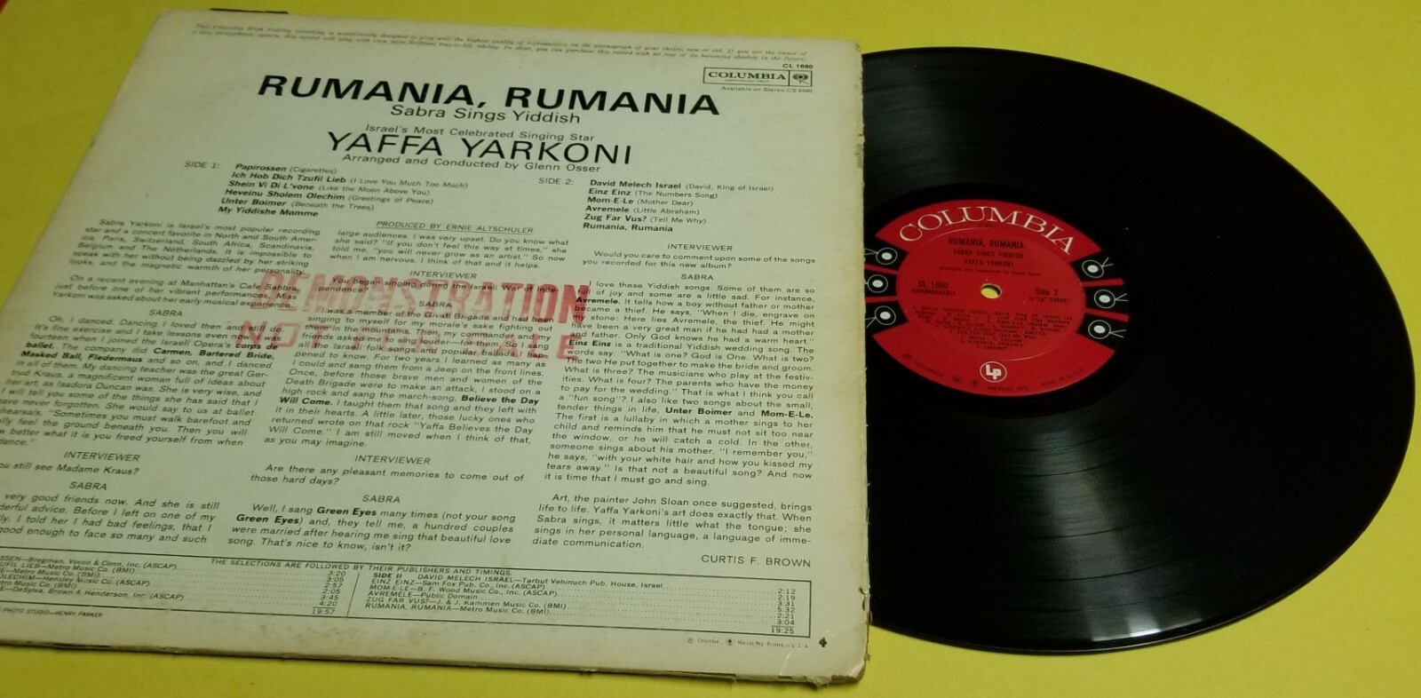 Sabra Sings Yiddish - Rumania Rumania - Yaffa Yarkoni - Glenn Osser - Columbia
