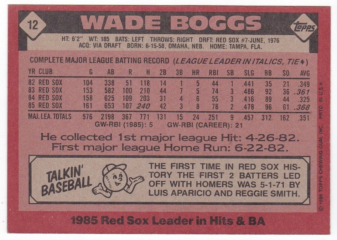 N) LARGE 1986 Topps Super Size MLB Baseball Picture Card Pack - Wade Boggs