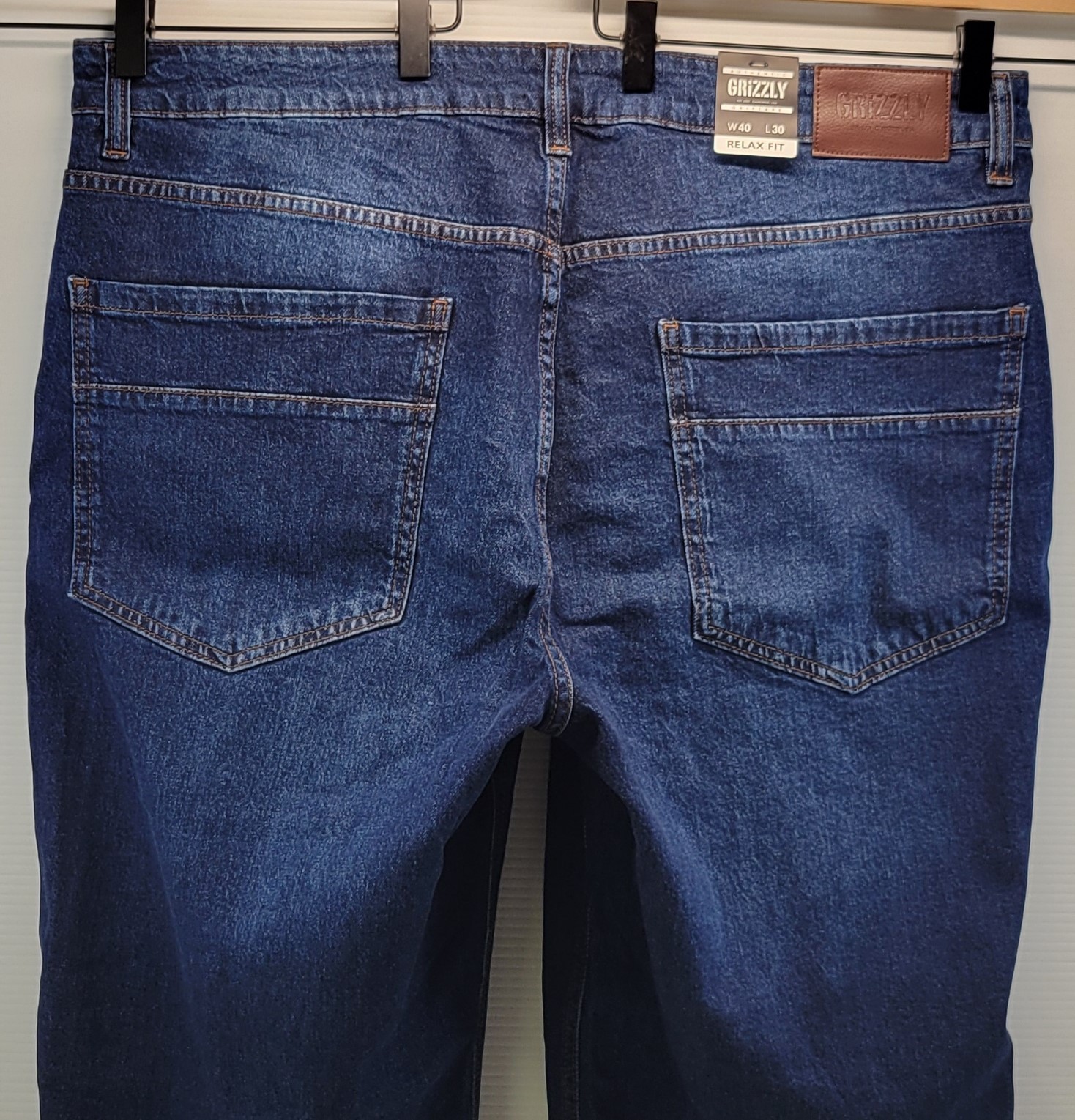 F) Grizzly Griptape Men Relaxed Fit Stretch Dark Wash Jeans 40x30