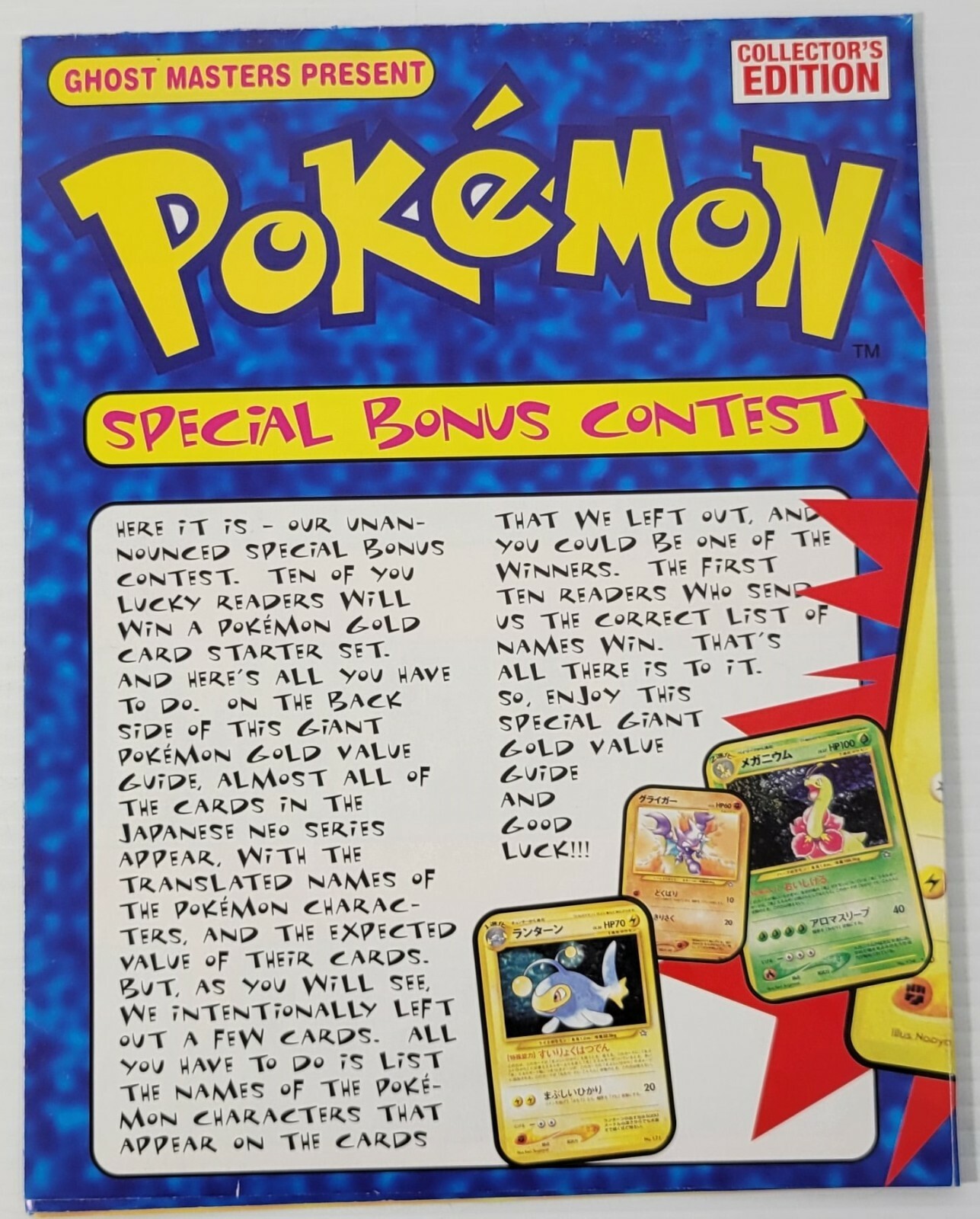 M) Vintage Pokemon Ghost Masters Gold Card Price Guide Collector's Poster