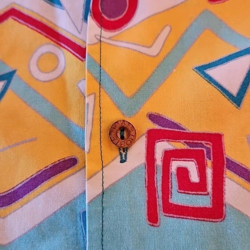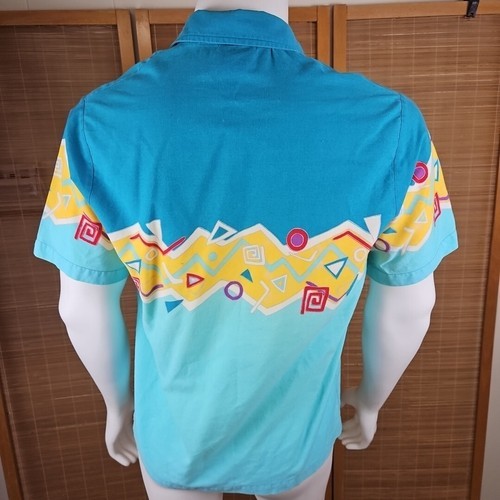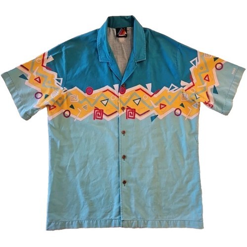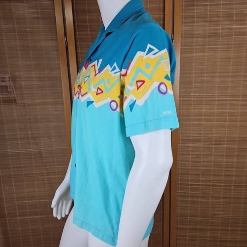 Vtg Hobie Sailing Shirt Mens L Teal Blue Colorblock Hawaiian Max Headroom Aloha