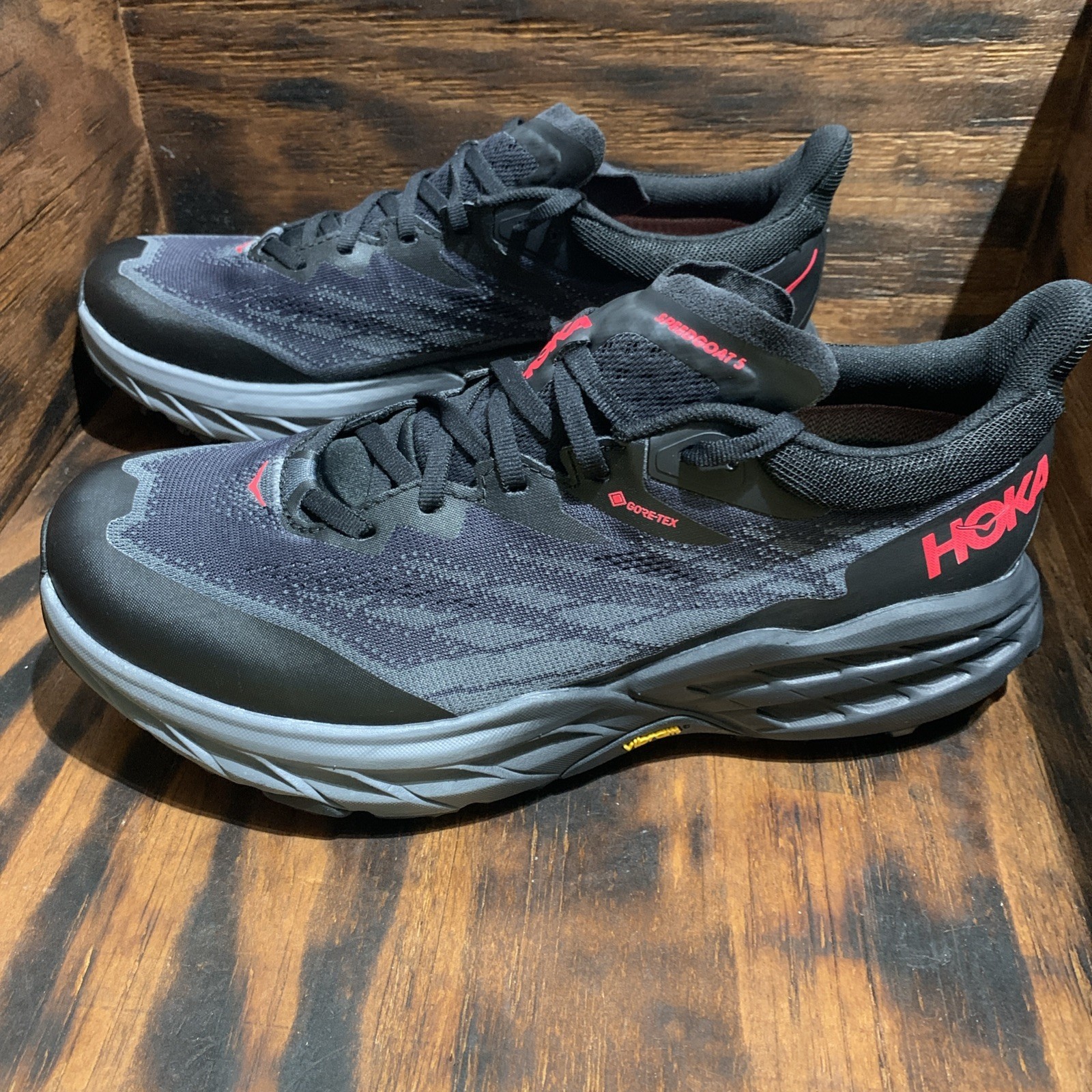 Hoka One One Womens Speedgoat 5 GTX Spike Trail Running Shoes 8.5B Black Hiking