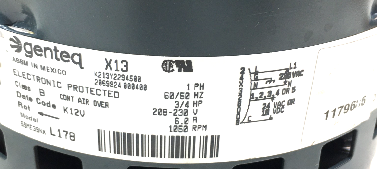 Genteq X13 FM18 5SME39NXL178 Blower Motor 1179685 3/4HP 230V CCWLE used MB726