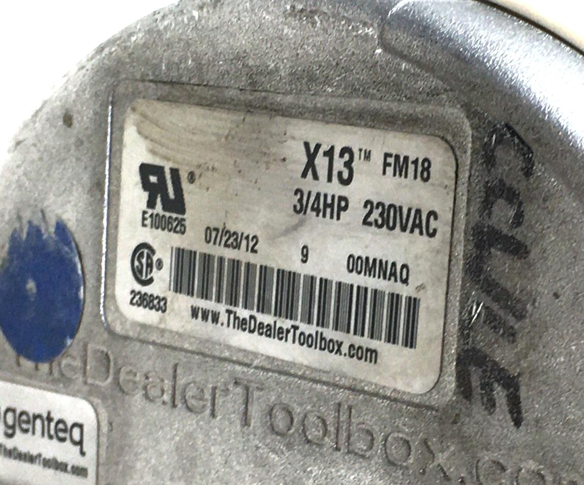 This is Genteq X13 FM18 5SME39NXL178 Blower Motor 1179685 3/4HP 230V 1050 RPM CCW Lead End rotation used part.