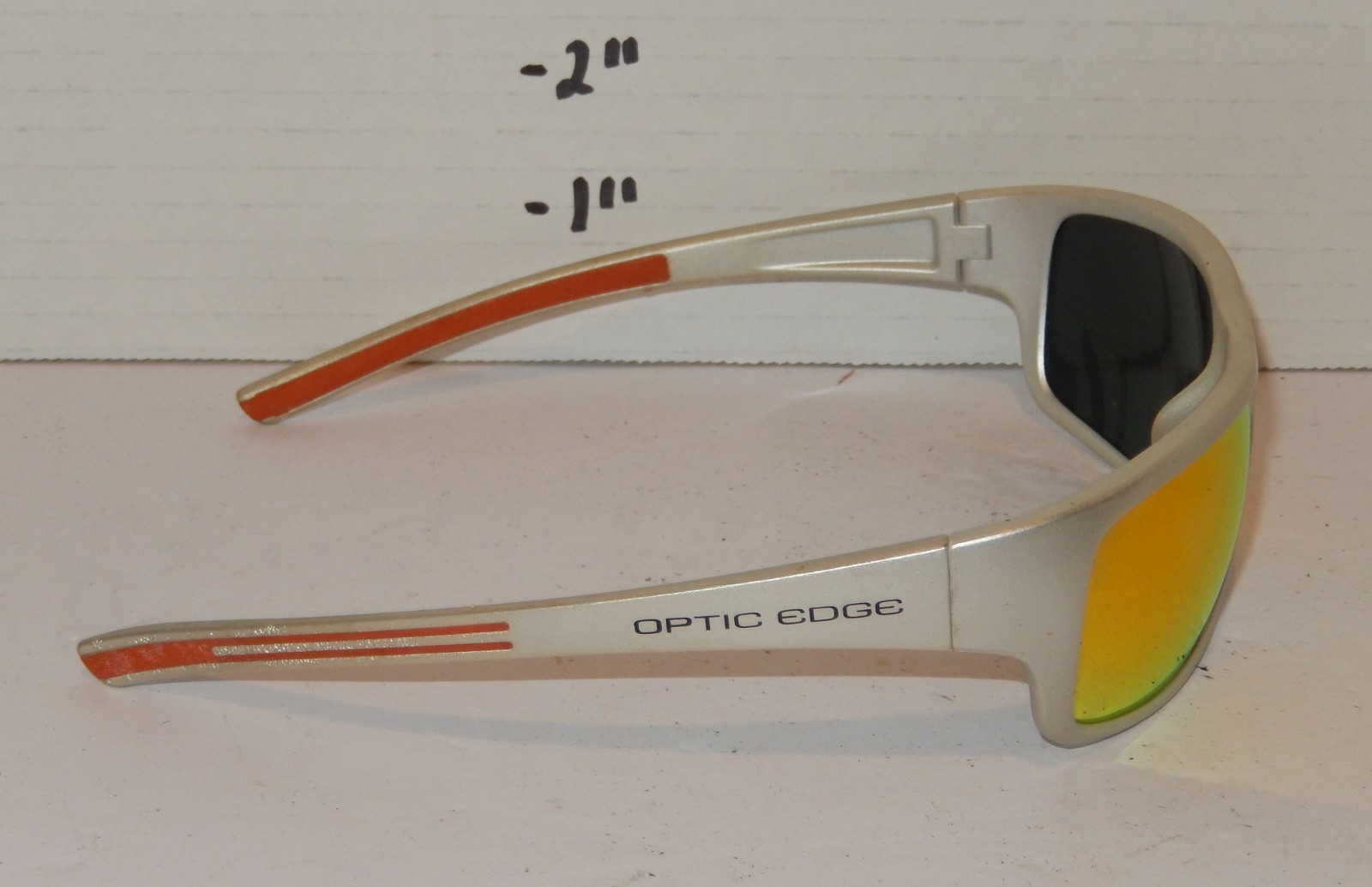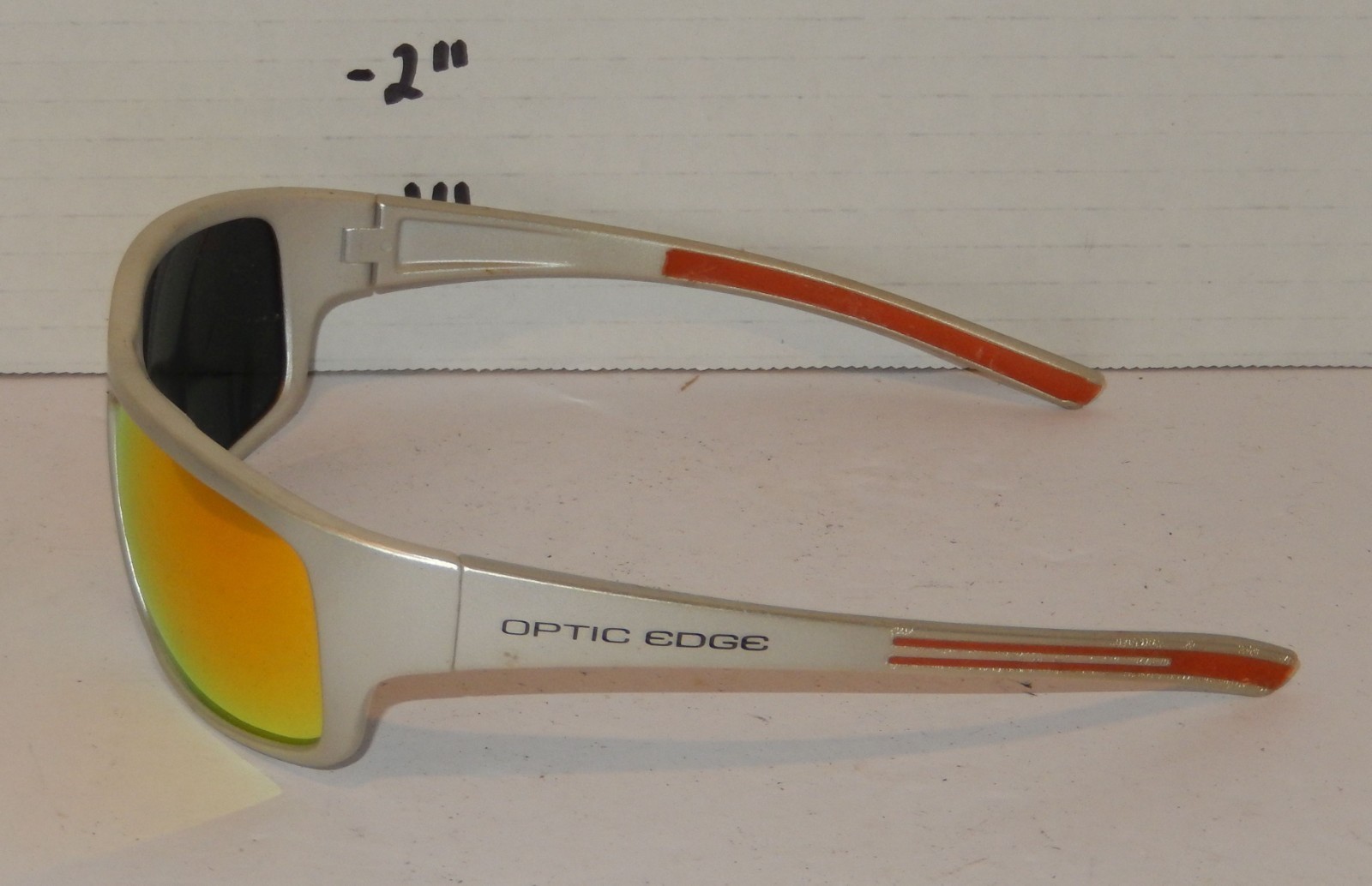 Up for sale is a Optic Edge Silver Wrap Sunglasses Mirror Orange Lenses Sport Shield Men?s UV.