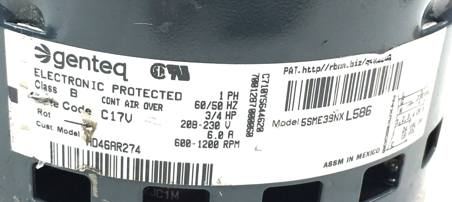 Genteq X13 FM18 5SME39NXL586 Blower Motor HD46AR274 230V CWLE used #MB905