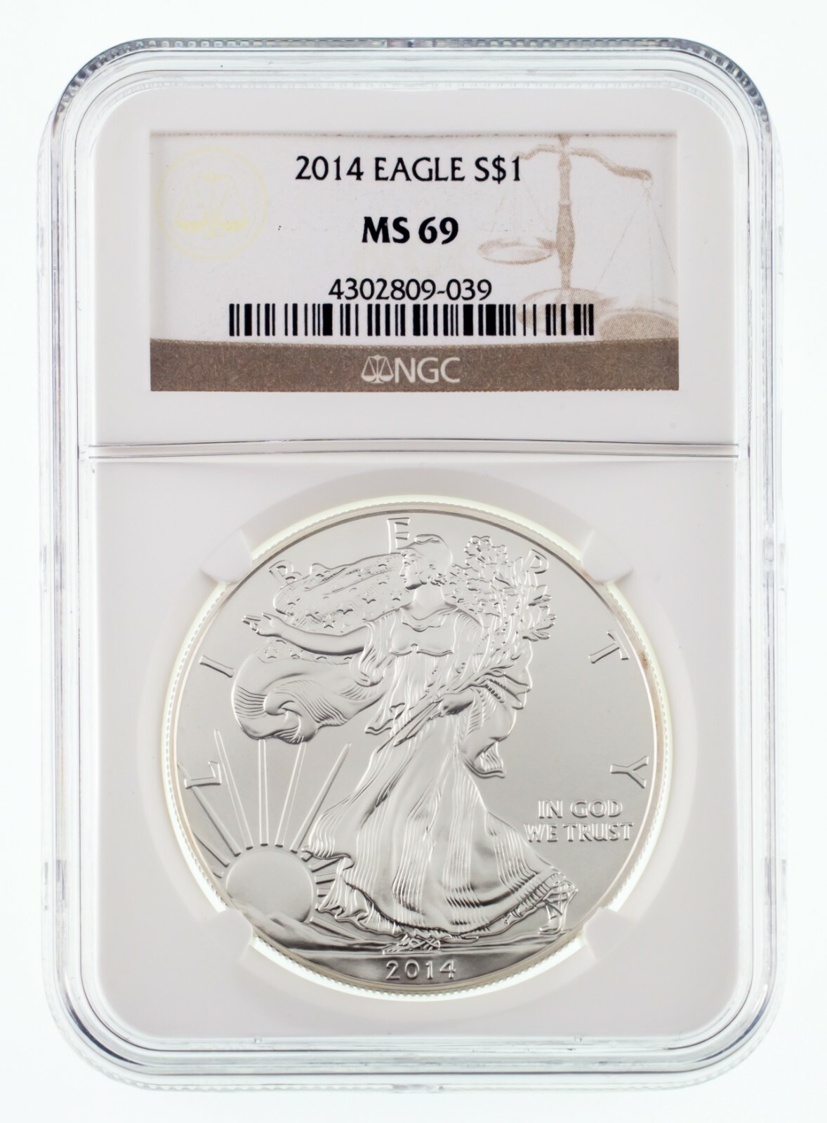 2014 Silver American Eagle Graded by NGC as MS-69