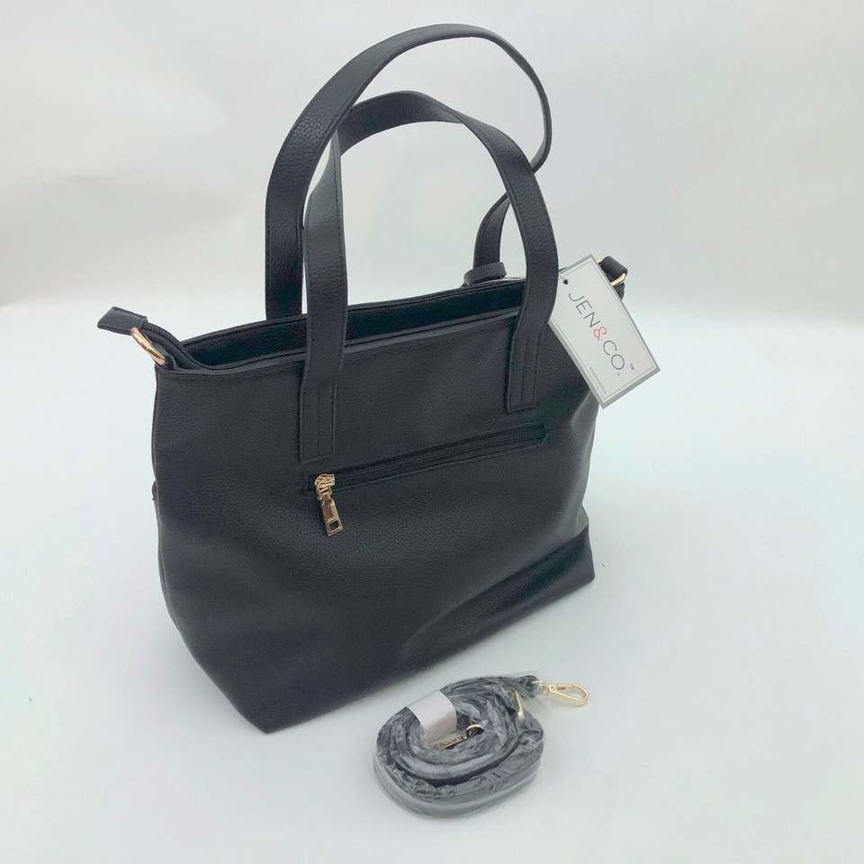 Jen & Co Black Cassandra Double Pocket Tote Cross Body 10x13x5 inches