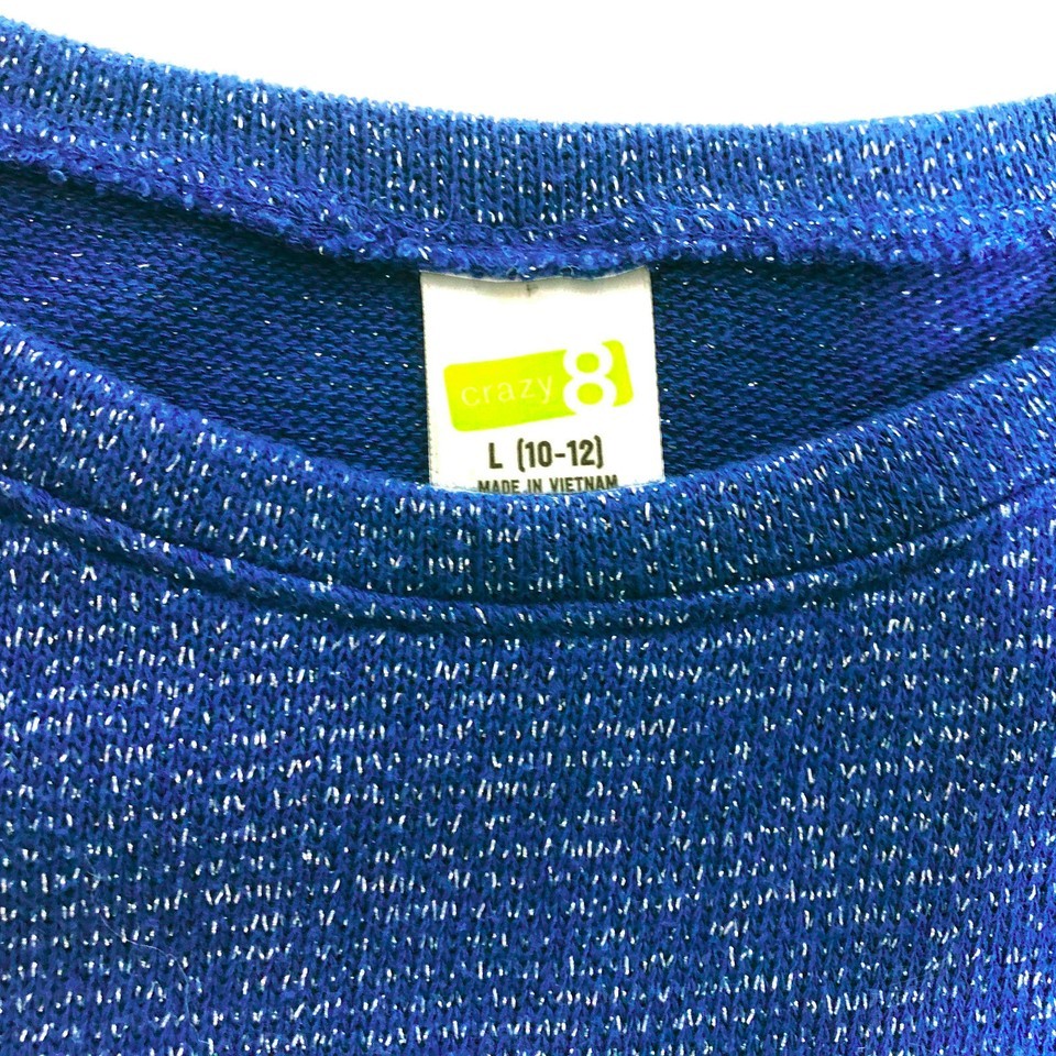 EUC, Excellent Used Condition. This Crazy 8 blue with silver metallic threads long sleeve shirt is fun to dress up jeans or leggings, or a maxi skirt. Great for parties with its' shiny silver metallic threads. The top has a hi-low hem. No rips, stains, or tears.