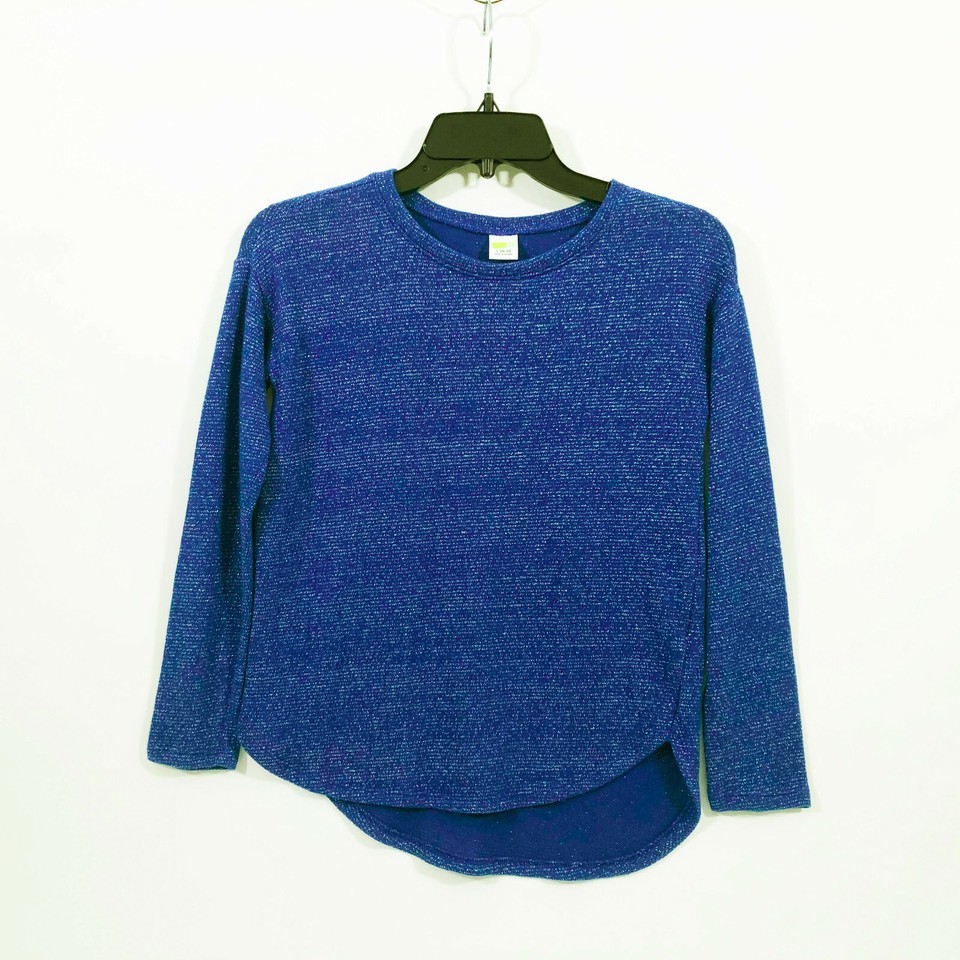 EUC Crazy 8 Blue Metallic Silver Hi Low Long Sleeve Top Girls L 10-12