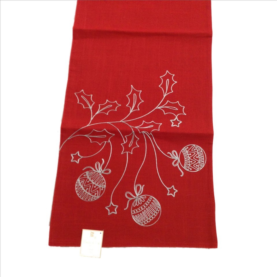 Dress your table in contemporary style with Saro Lifestyle's embroidered Christmas design table runner in festive red. Dramatic holiday red table runner with burnished silver ornaments, stars and holly leaves. this linen look table runner will add a touch of unique elegance to your holiday dining. Made in china of 100% Polyester. Wash delicate and line dry. Embroidered Christmas Tree Ornaments Design Table Runner; One Piece 100% Polyester Woven Hand Wash Only