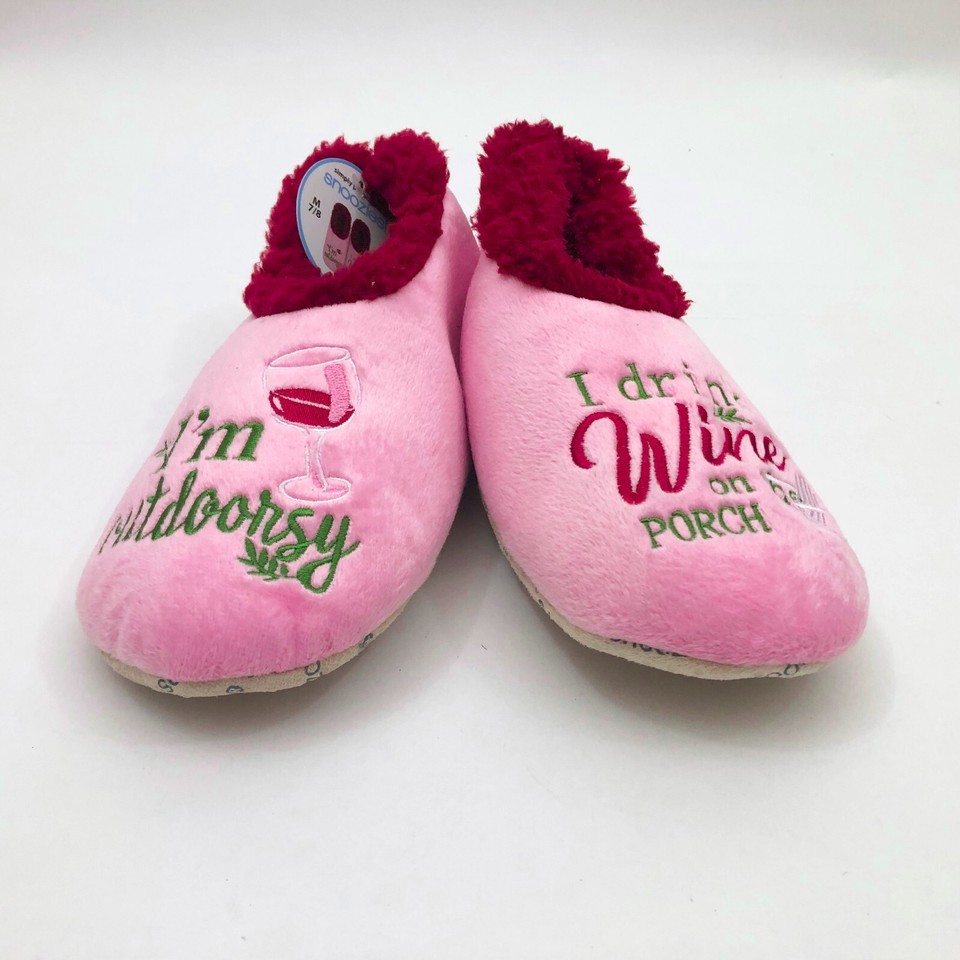 Snoozies Women's I'm Outdoorsy I Drink on Porch Slippers Non-Skid Medium 7/8