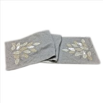 Saro Grey and Silver Table Runner with Appliqued Holly Leaves 13x72 inches