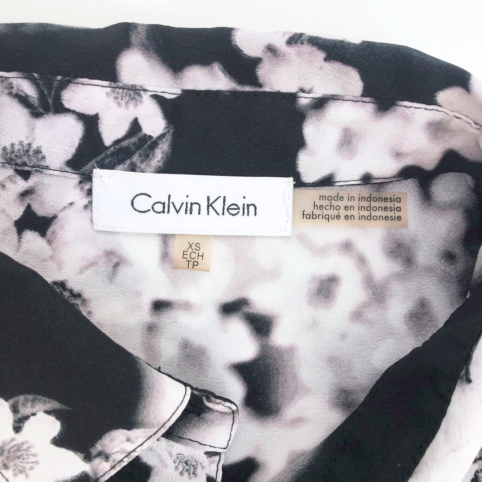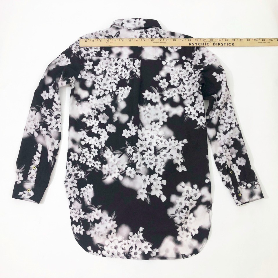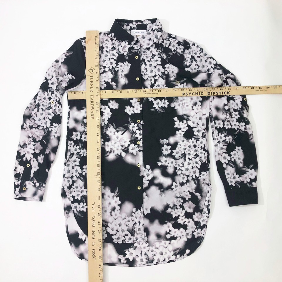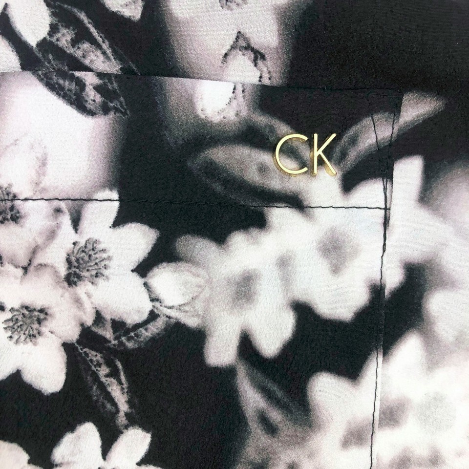Calvin Klein Black & White Floral Long Roll Tab Sleeves Tunic Women's Size XS