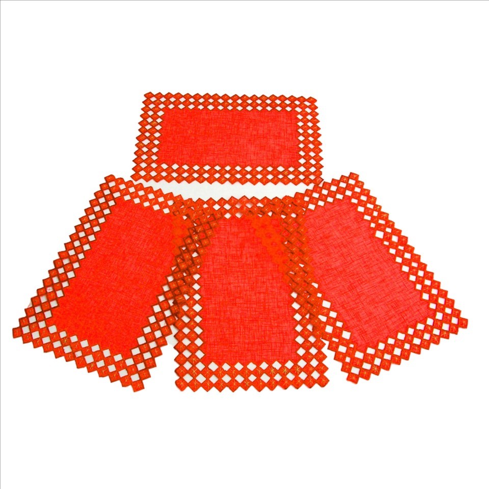 Las Estrellas Set of 4 Place Mats 12x18 inches Red & Gold Embroiderie