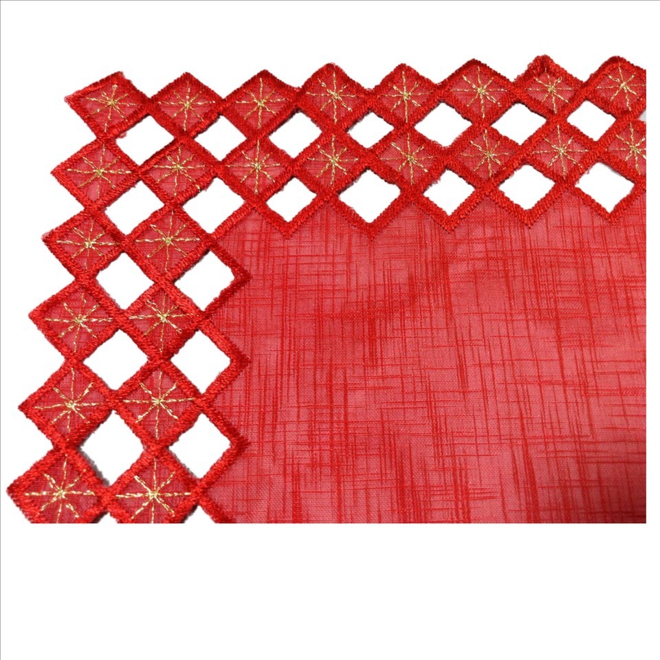 Dress your table in contemporary elegance with Saro Lifestyle's Embroidered and Cut work Place-Mats. Bright red with embroidered gold snowflakes around the edges. Matching embroidered and cut work design table runners are also available.