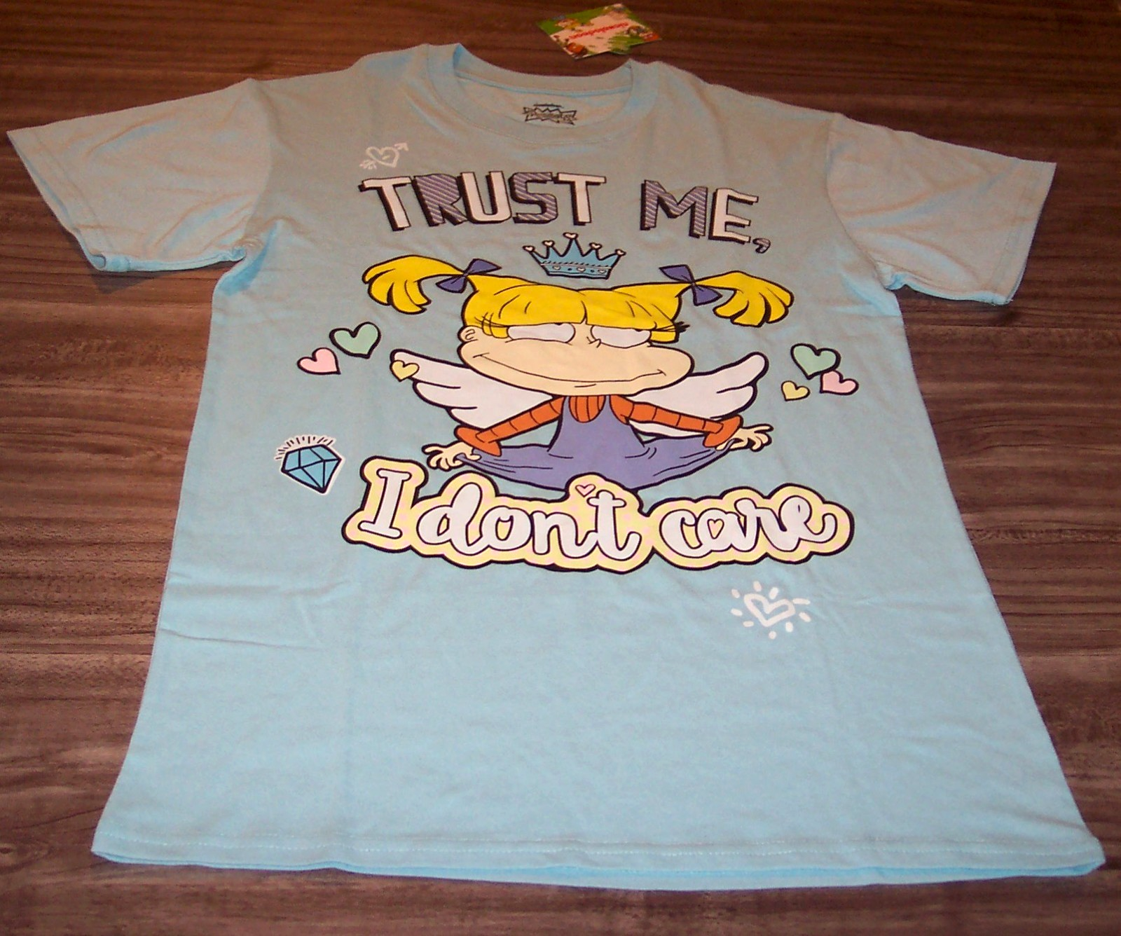 This is a Nickelodeon Rugrats ANGELICA Trust Me I Don't Care T-shirt. It is a size SMALL, and it is NEW with the tag. It is 18 inches from armpit to armpit and 28 inches in length. Combine auctions to save on shipping. AD