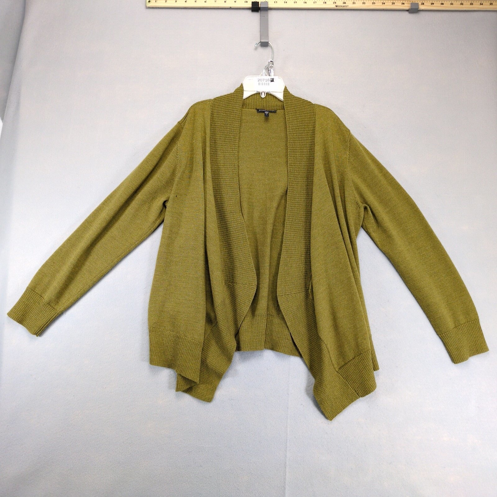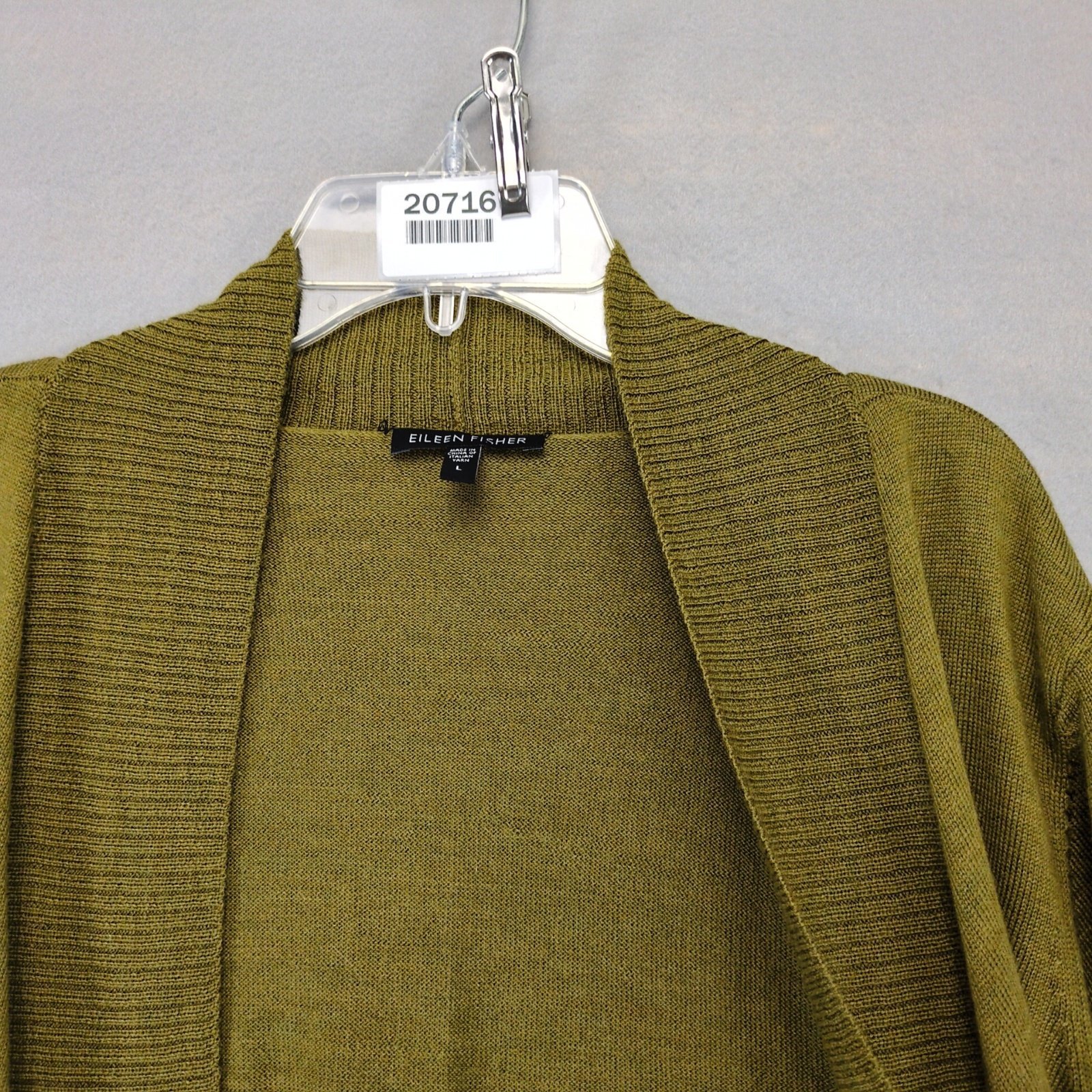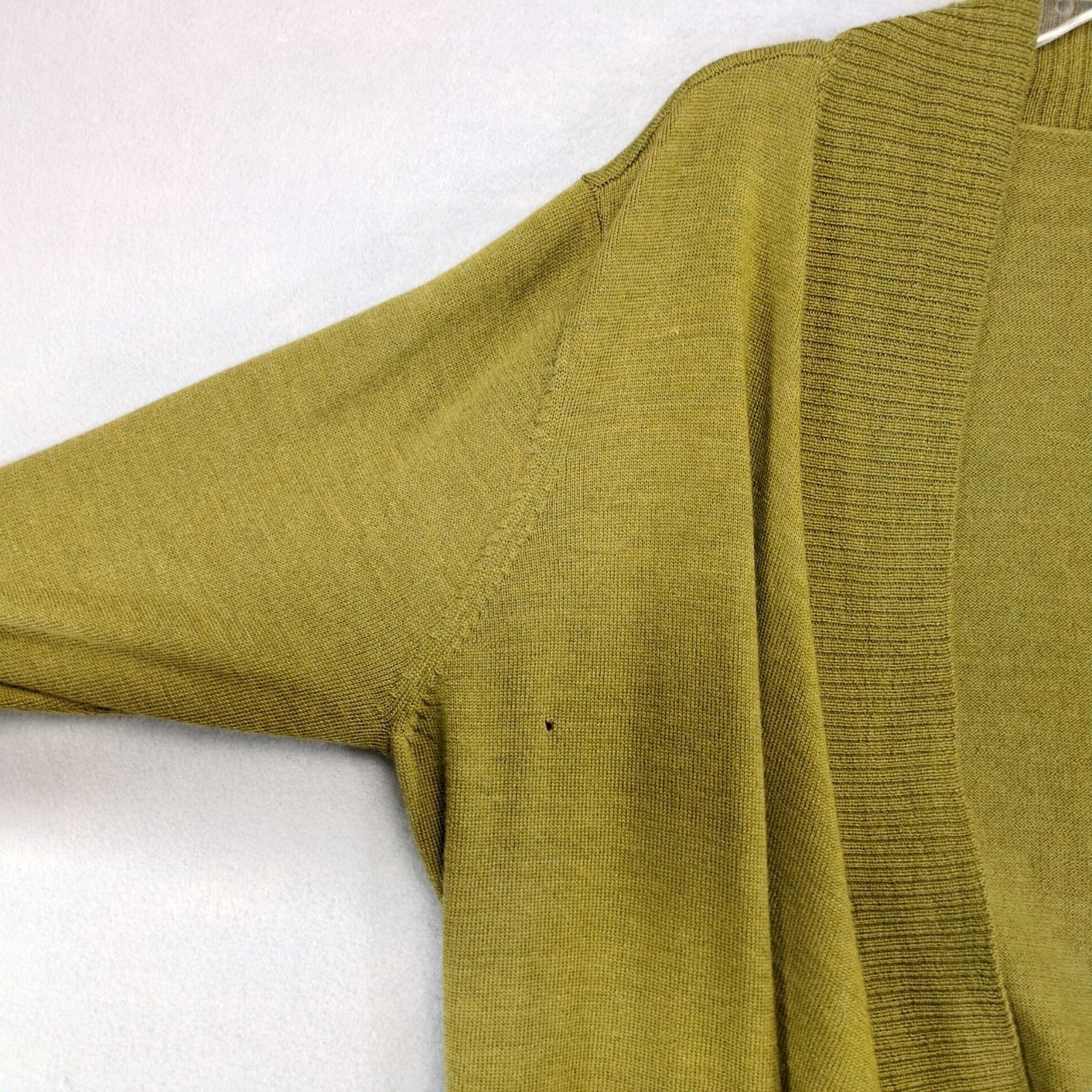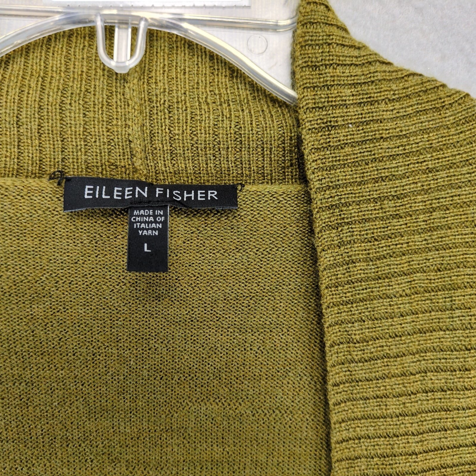 Eileen Fisher 100% Merino Wool Open Cardigan Knit Sweater Women's L Moss Green