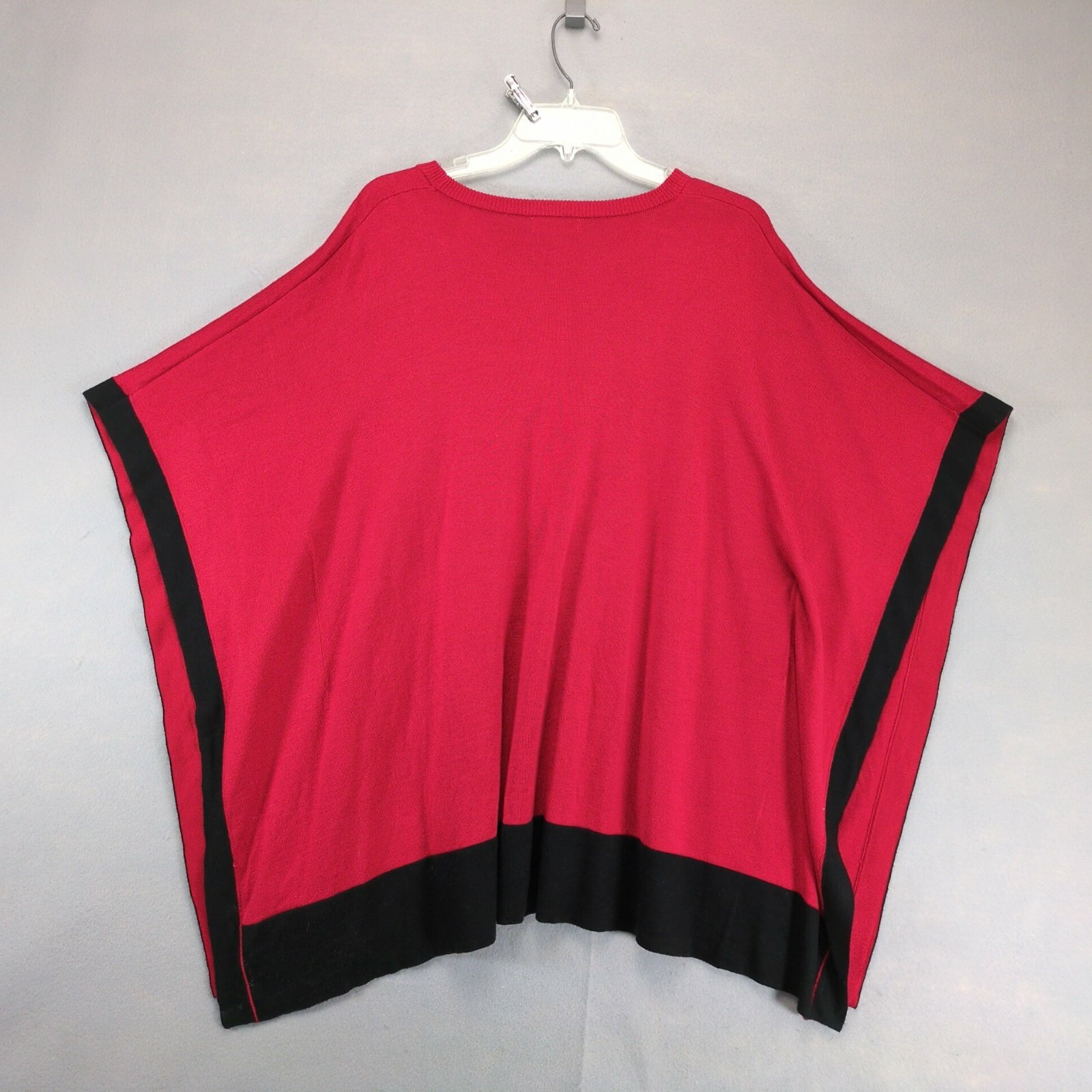 Calvin Klein Red Black Soft Knit Poncho Sweater Women's S/M Retro Mod Outdoors