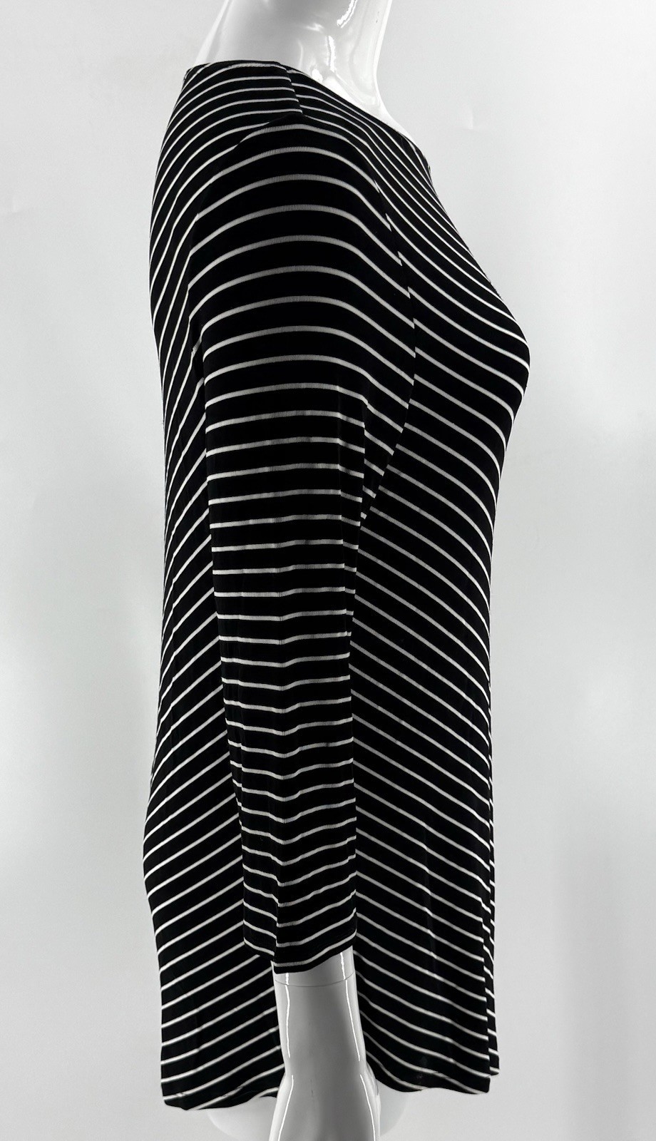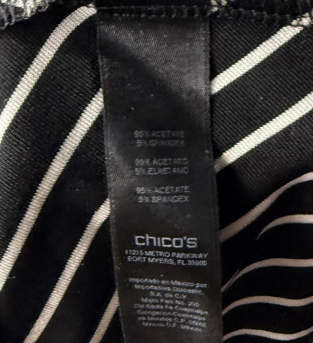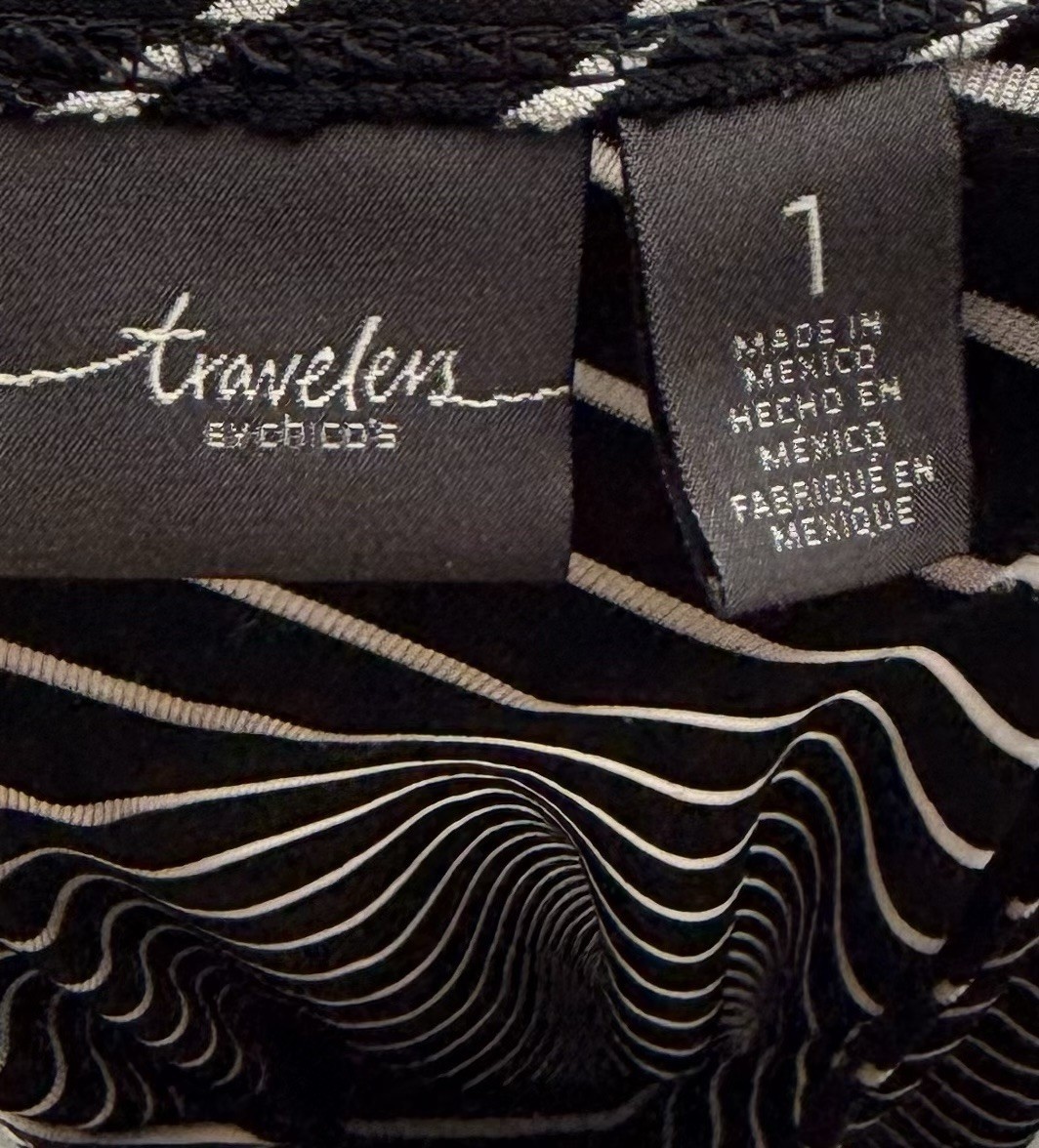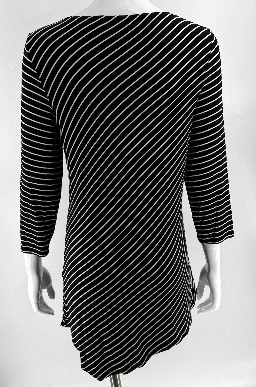 Chicos Travelers Tunic Top Size 1 / US Med Black White Striped Asymmetrical Hem