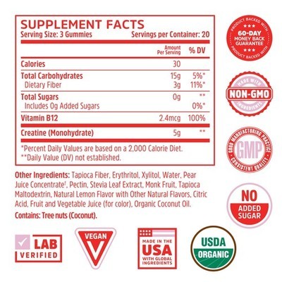 Expiration Date of 10/2026 ? High-Octane Workout Fuel - Packed with 5 g of pure creatine monohydrate, our Creatine Chews help fuel your muscles to power through intense training sessions ? Delicious And Convenient - Enjoy your pre workout gummies in a tasty pink lemonade flavor. These sugar free Creatine Gummies make it easy to fuel up pre workout or post workout without any hassle ? Muscle Support - Creatine is a powerful amino acid that supports muscle growth and performance, making these creatine chews a perfect addition to daily fitness for men and women alike ? Pure Formulation - Our vegan creatine chews are made with clean ingredients and enhanced with vitamin B-12 to supportmuscle health, helping you get the most out of every workout ? Inspired By Nature, Uplifted By Science - Zhou crafts powerful, pure supplements using the best ingredients. Formulated in Salt Lake City, our products support active lifestyles and whole-body health