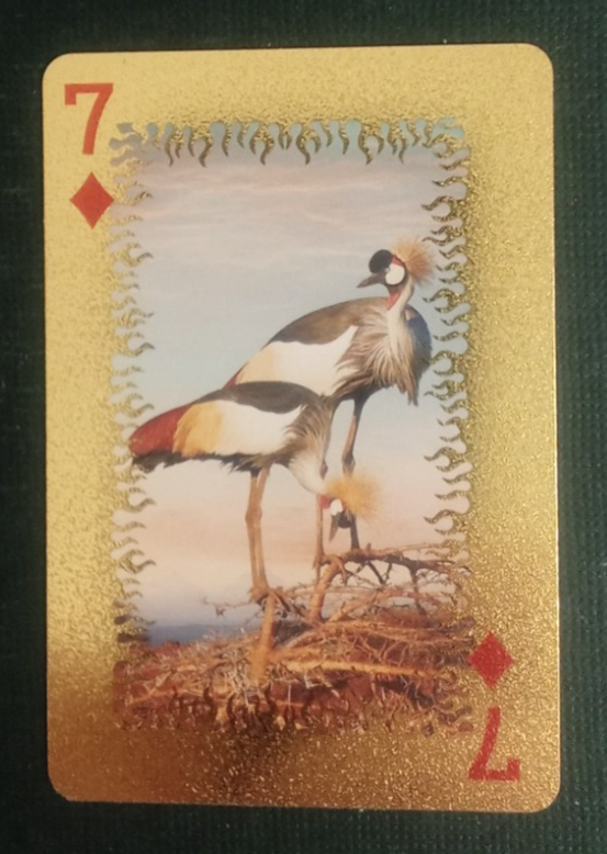 This is for a Animal-Themed Golden Foil PVC Mini Playing Card Cranes 7 Diamonds.
