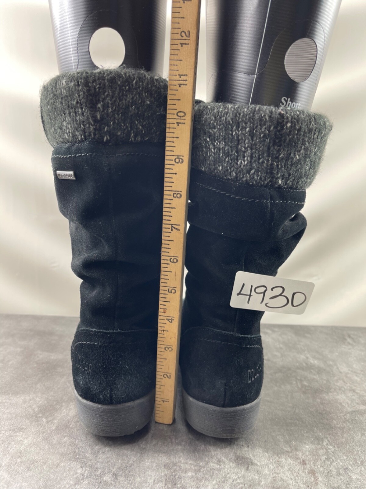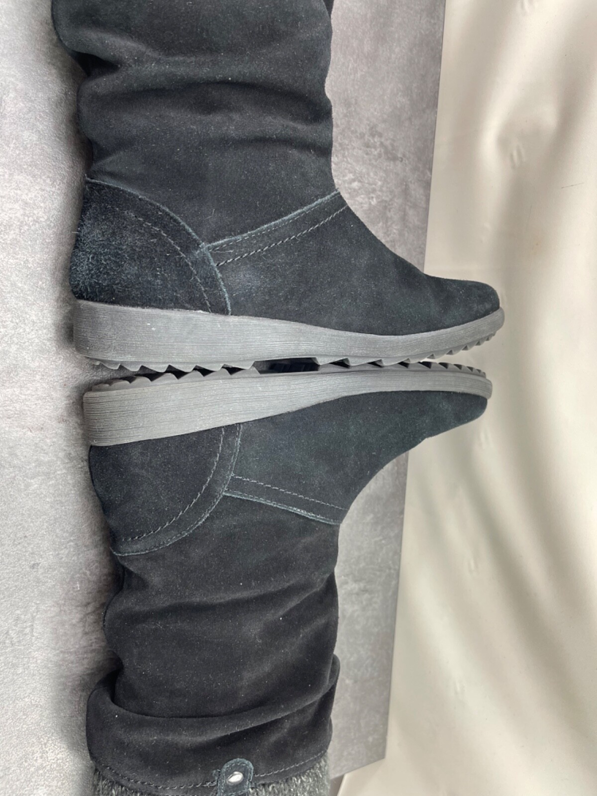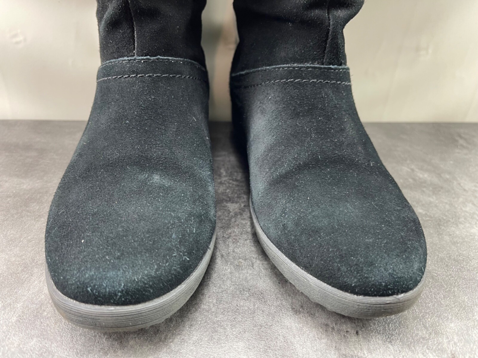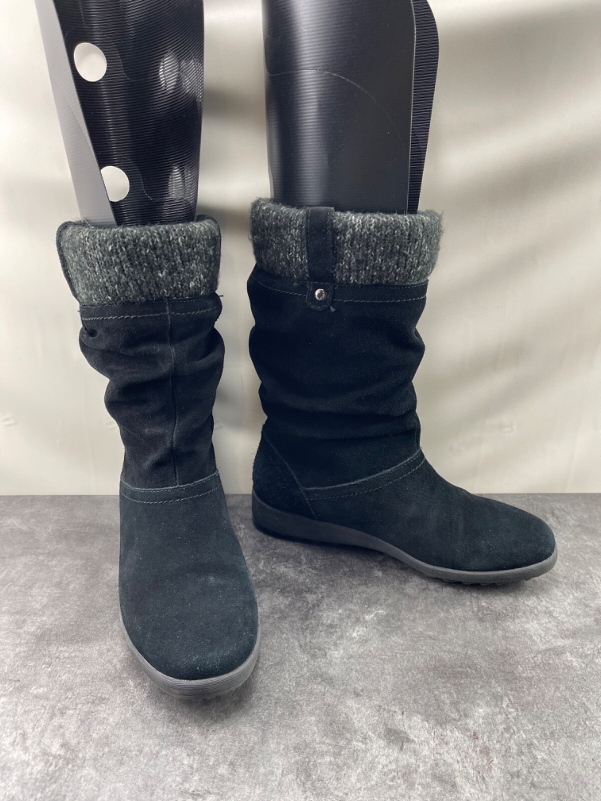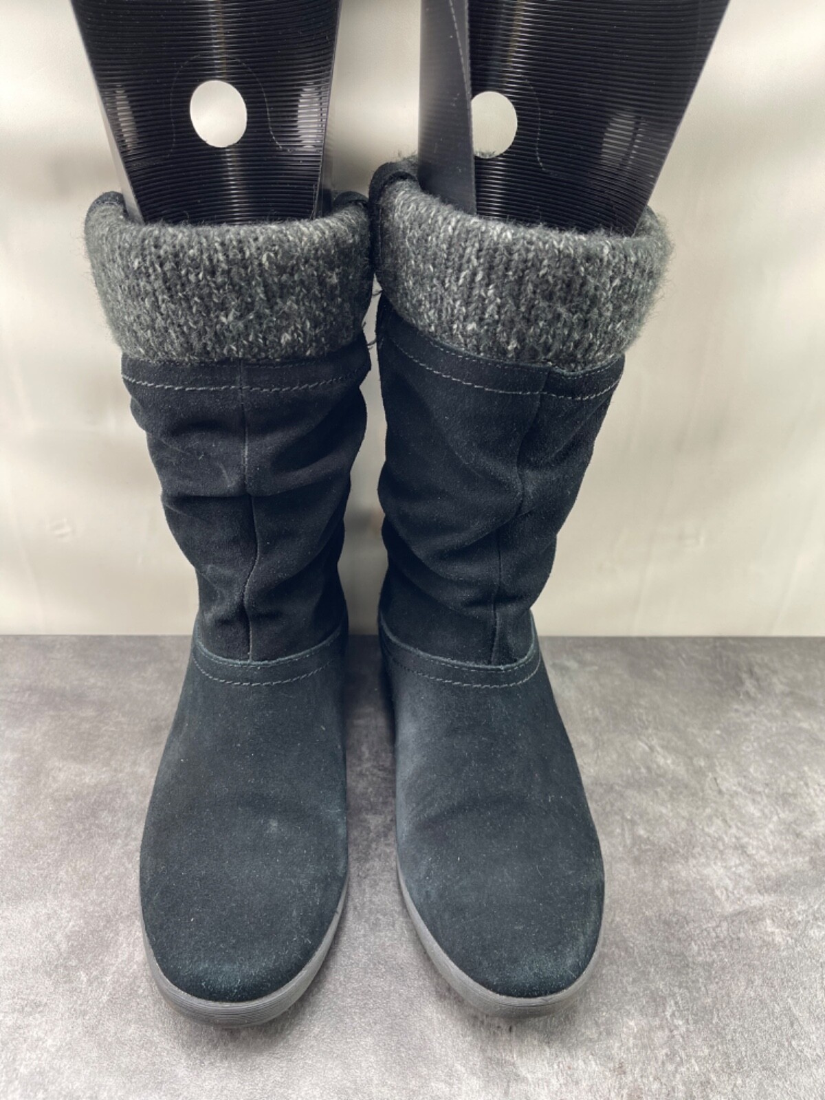 Cougar Boots Women 7M Vidal Shoes Black Suede Sweater Knit Trim Mid Calf Winter