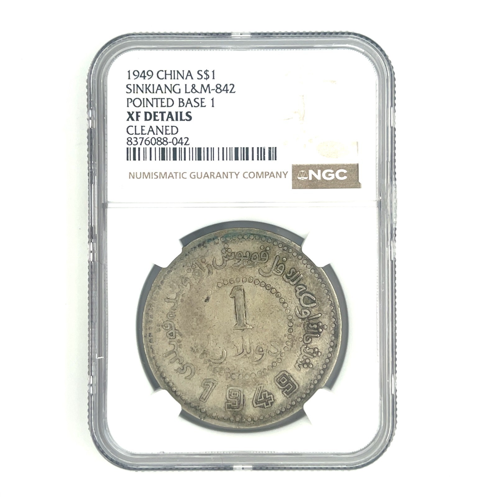 1949 China S $1 Dollar Sinjiang L&M-842 Pointed Base 1 By NGC Ace XF- show or...