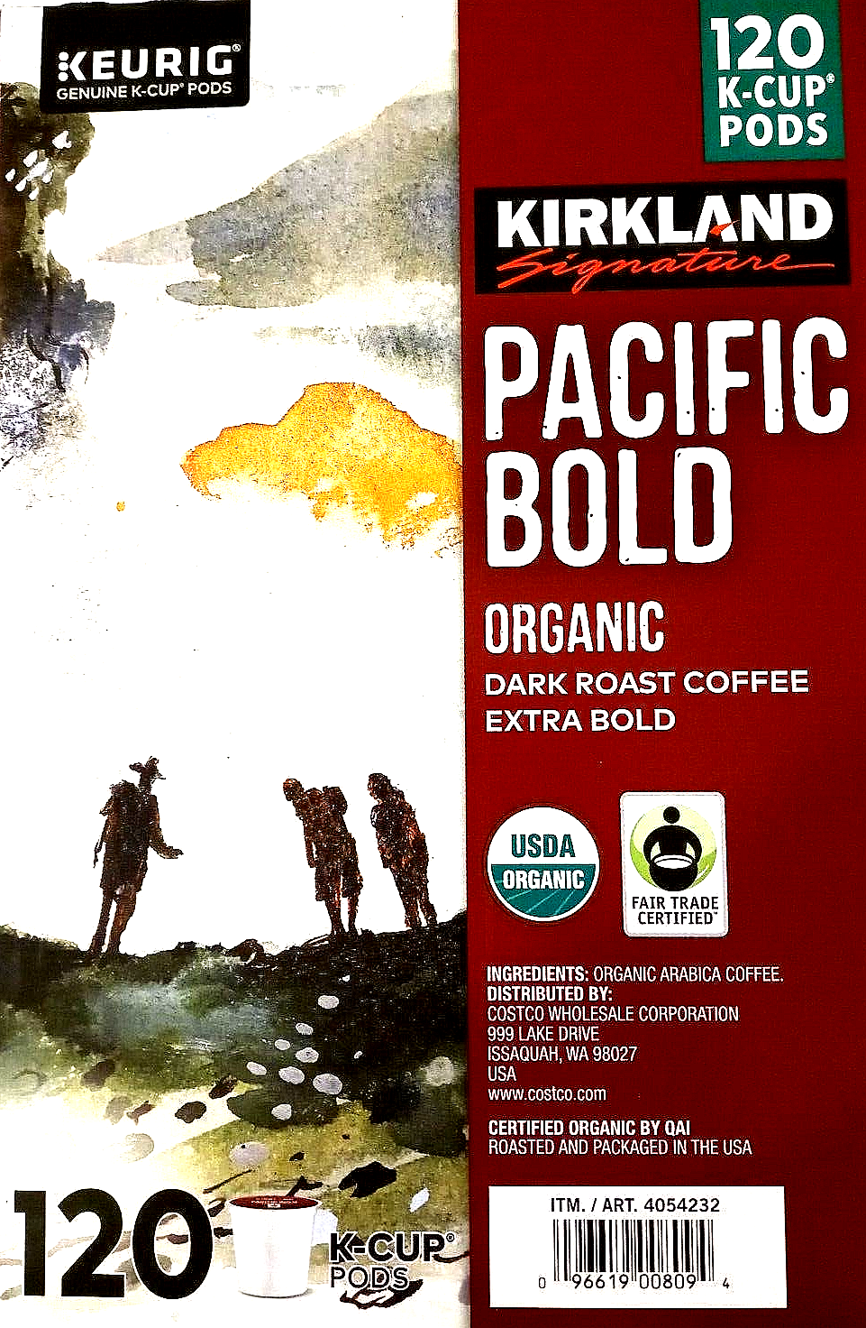 Kirkland Signature Pacific Bold Organic Dark Roast Coffee 120K-Cup Pods EXP04/26