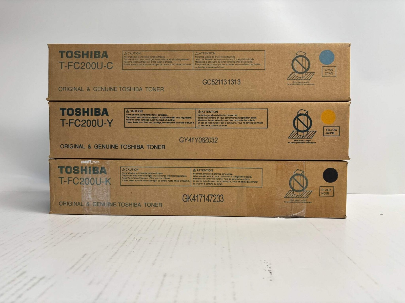 3 New Genuine Toshiba e-STUDIO 2000AC,2500AC CYK Toner T-FC200U (No Magenta)
