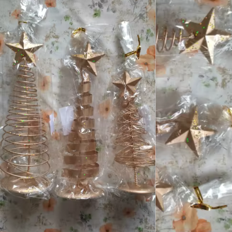 Made of durable iron with a glossy gold finish, each piece features a unique spiral or ribbon design topped with a shining star.